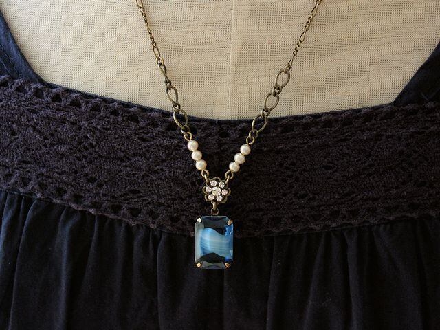 お花のようなラインストーンとヴィンテージパールをあしらい、