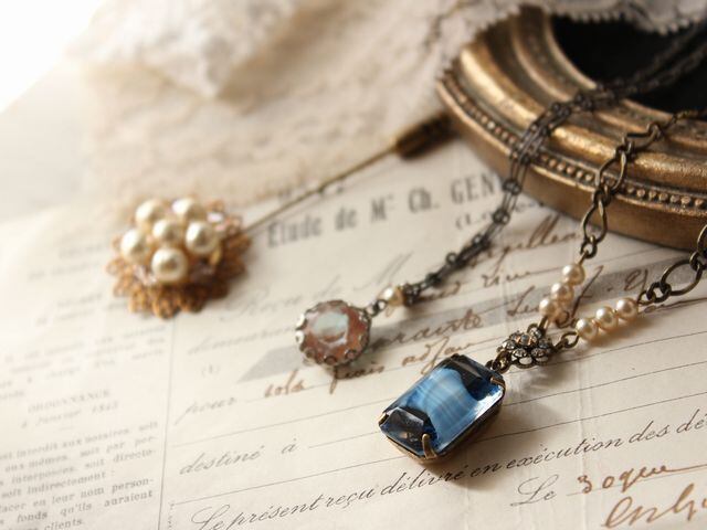 ヴィンテージ・ガラスパール ヴィンテージ加工ラインストーン