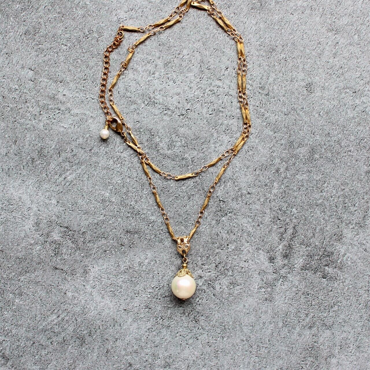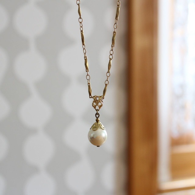 そんなイメージで完成させた、クラシカルなムードあふれる、貝パールのペンダント・ネックレスです。