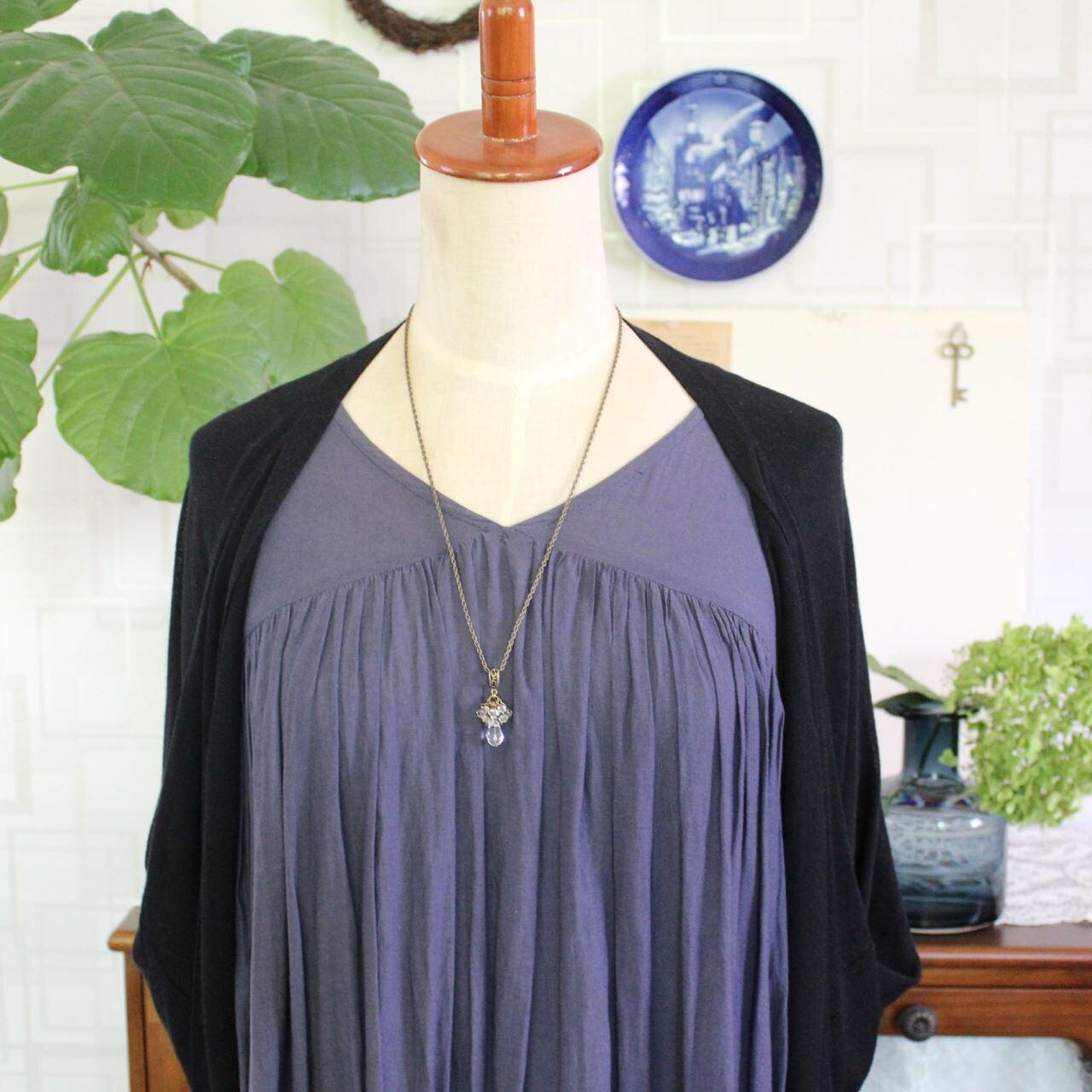 特に、秋冬の暗くなりがちな装いには、このペンダントを着けていただくだけで、装いにキラキラと上品な煌めきを添えてくれますよ。