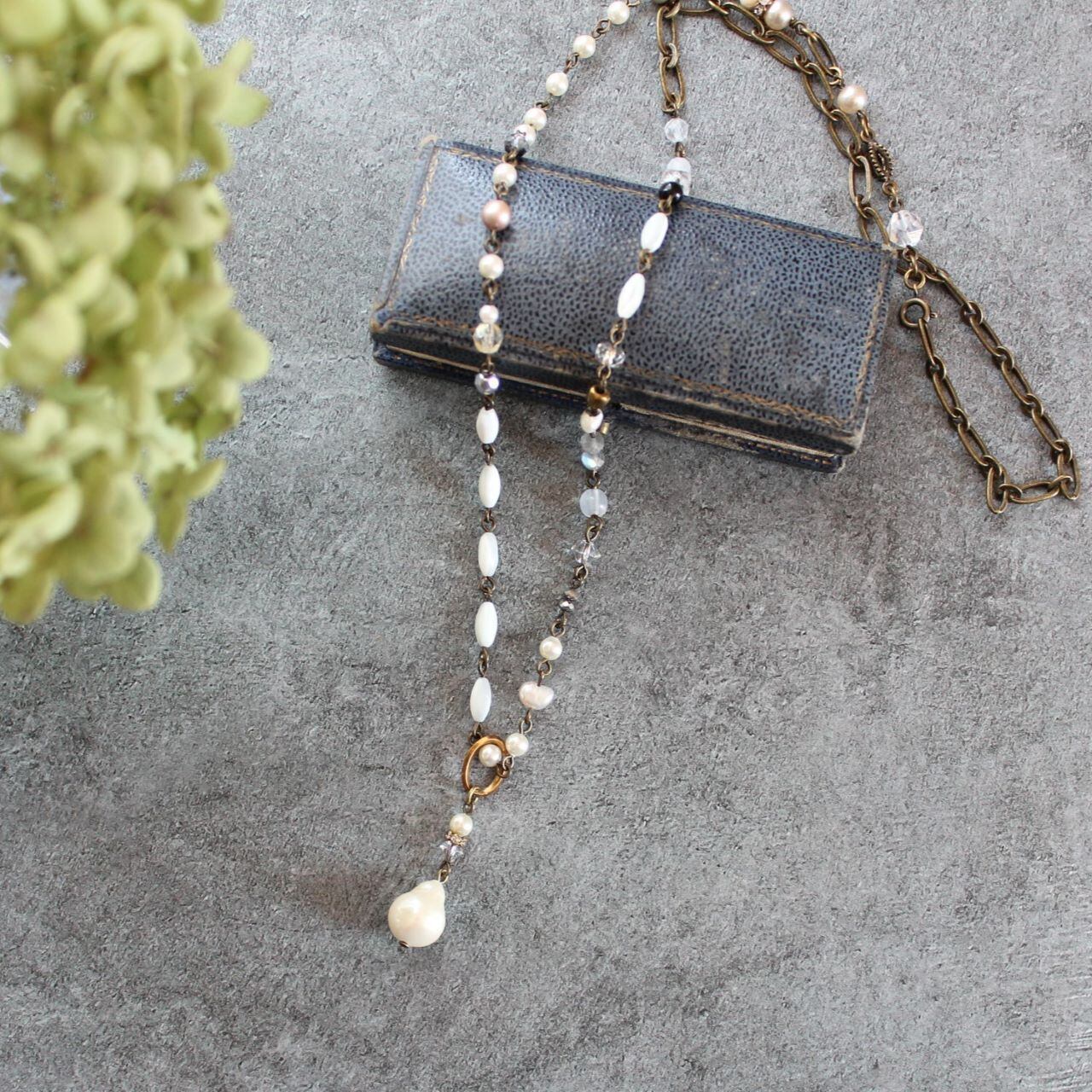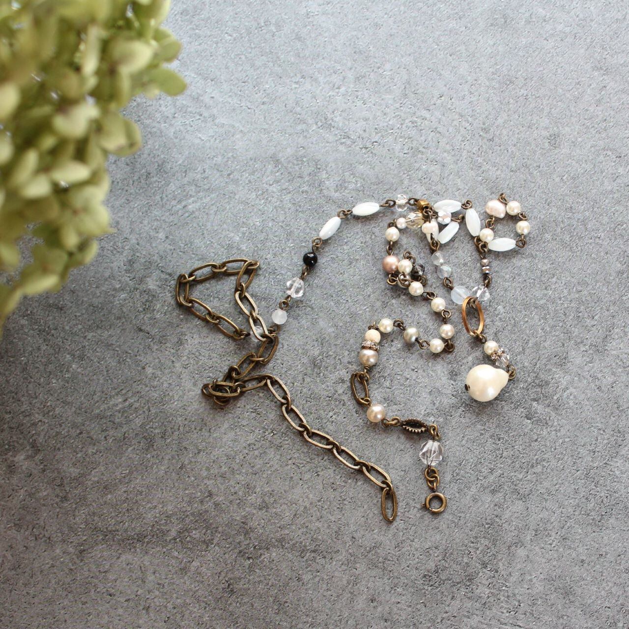 美しいものをつなぎ合わせて。 バロックガラスパール・ヴィンテージなムードのペンダント・ネックレス