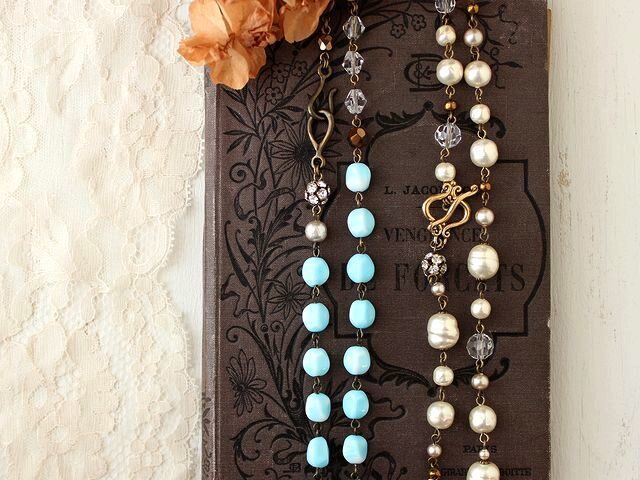 【 Iさまのご予約品 】 オーストリア・青い空のようなビーズ & 復刻バロック・ガラスパール ロングネックレス