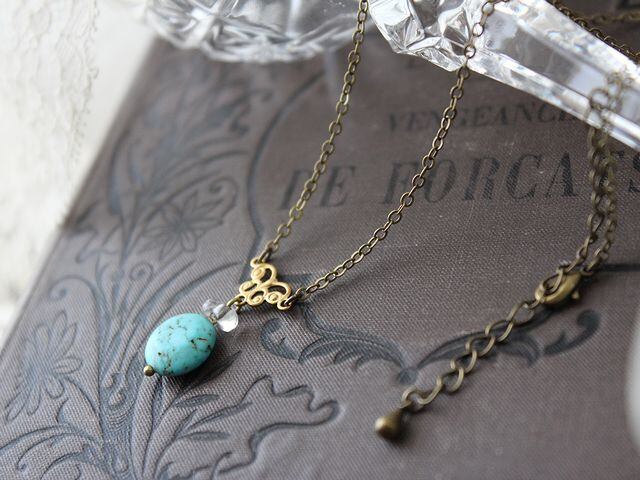 ターコイズと真鍮フィリグリーでクラシカル シックで愛らしいネックレス(ペンダント)