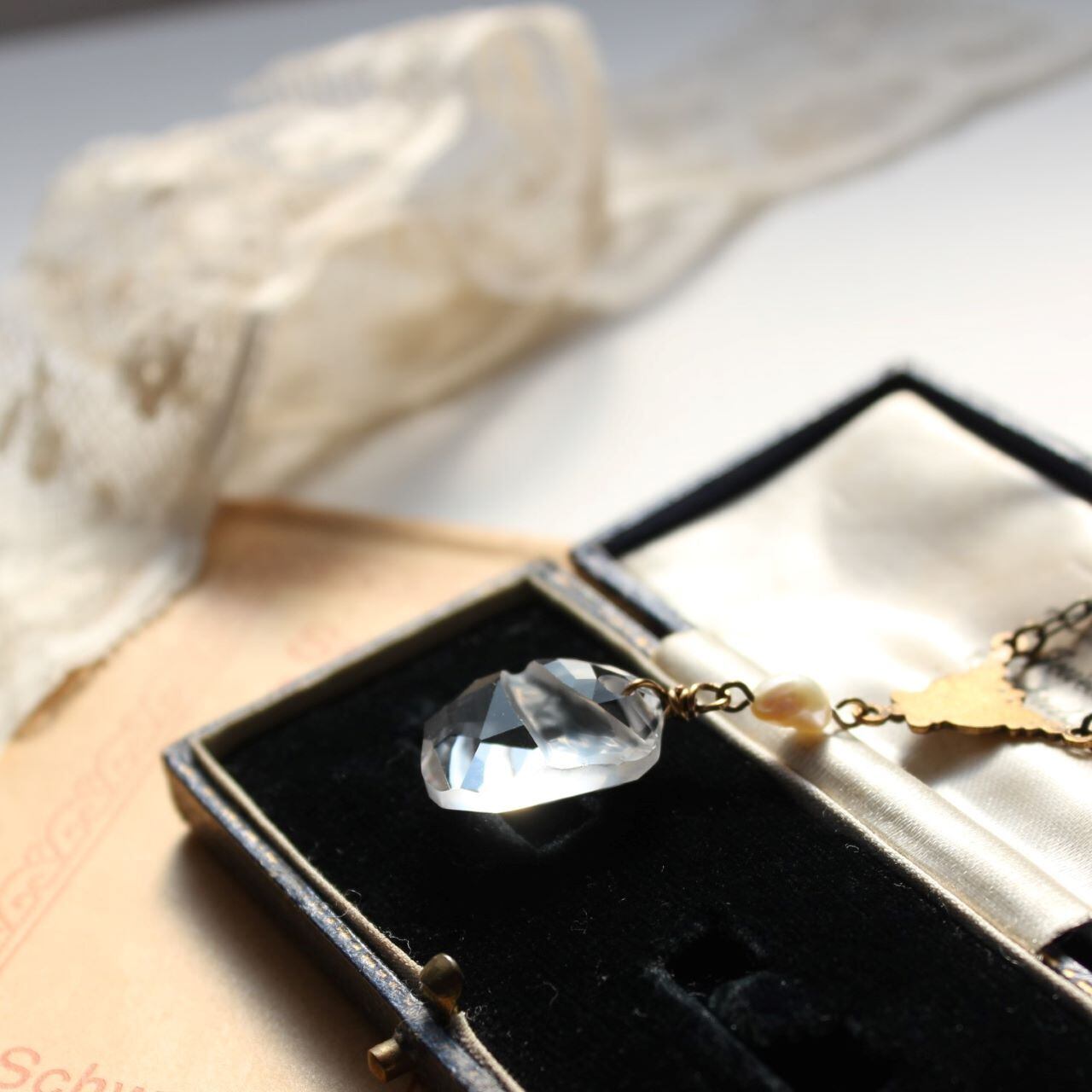 数量限定品、レアな形のスワロフスキーをアンティークなムードで仕上げたペンダント・ネックレス。