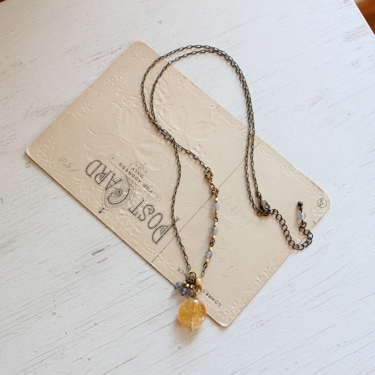 蜂蜜色と、ラブラドブルー シトリンとラブラドライトのペンダント・ネックレス