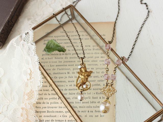 花びらのように繊細な色のヨーロッパビーズや、フィリグリーと合わせて、