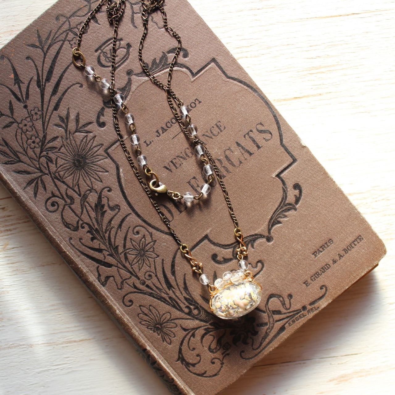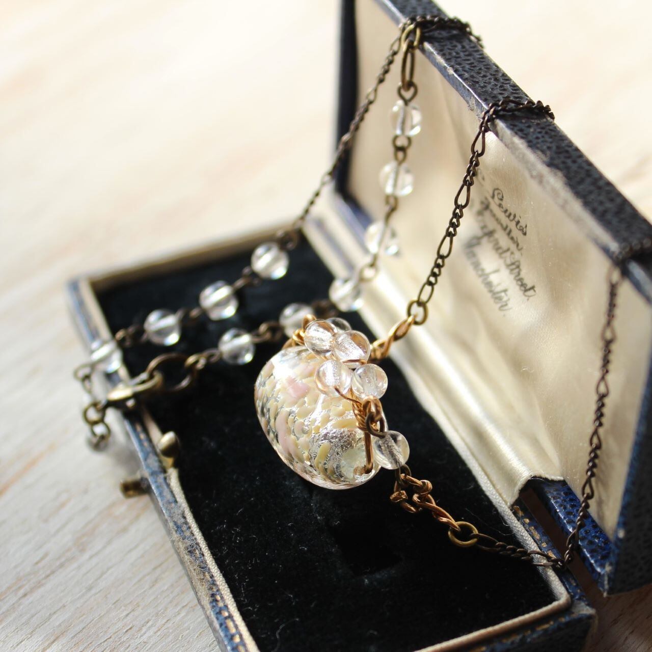 ヴェネチアンガラスに小さなガラスビーズをワイヤーワークしたペンダント・ネックレスは、ここだけにしかないTammy daisy のオリジナルデザイン。
