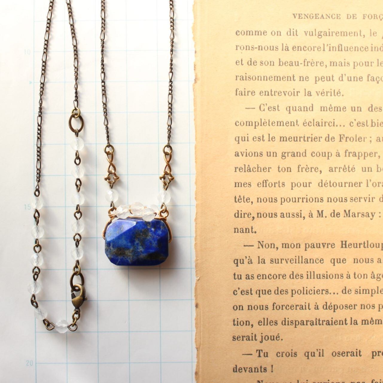 ポルトモネ・フランスのがま口みたいに愛らしい ラピスラズリと水晶 ペンダント・ネックレス 金古美
