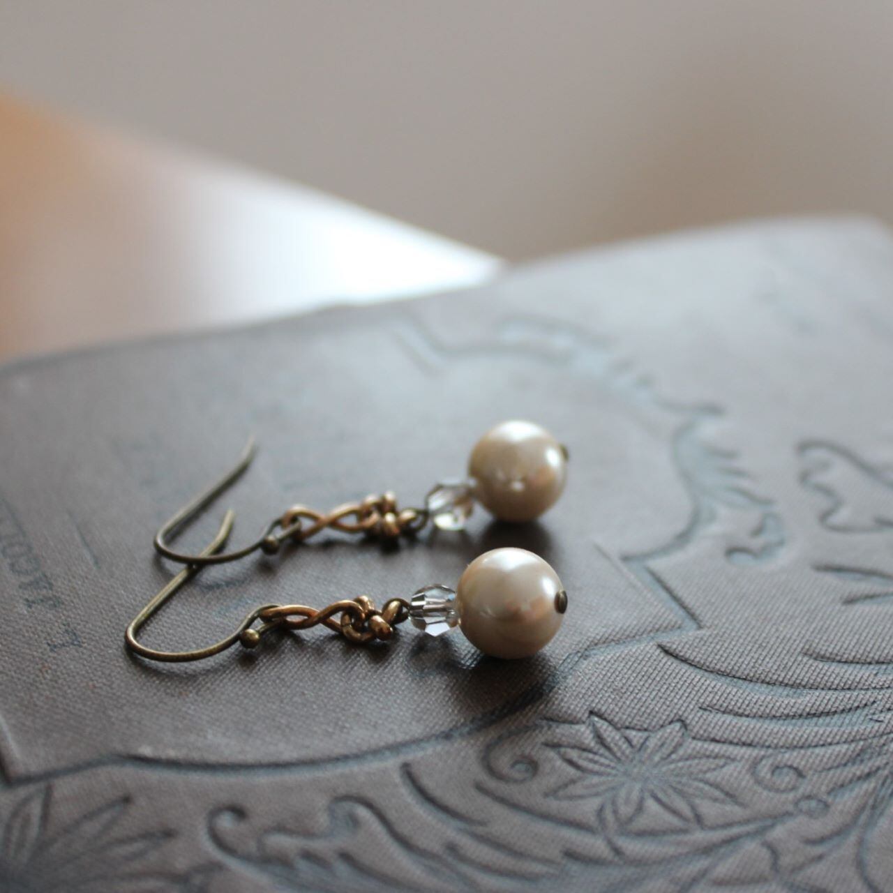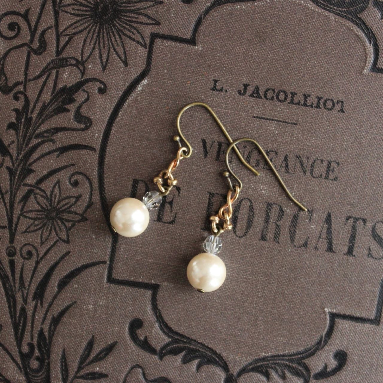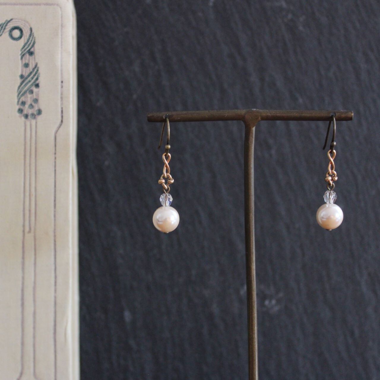 貝パールとスワロフスキークリスタルを合わせた、クラシカルなピアスです。