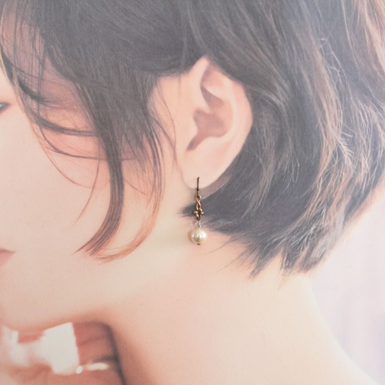 真鍮の小さなパーツが、このピアスにクラシカルなムードを添えてくれています。