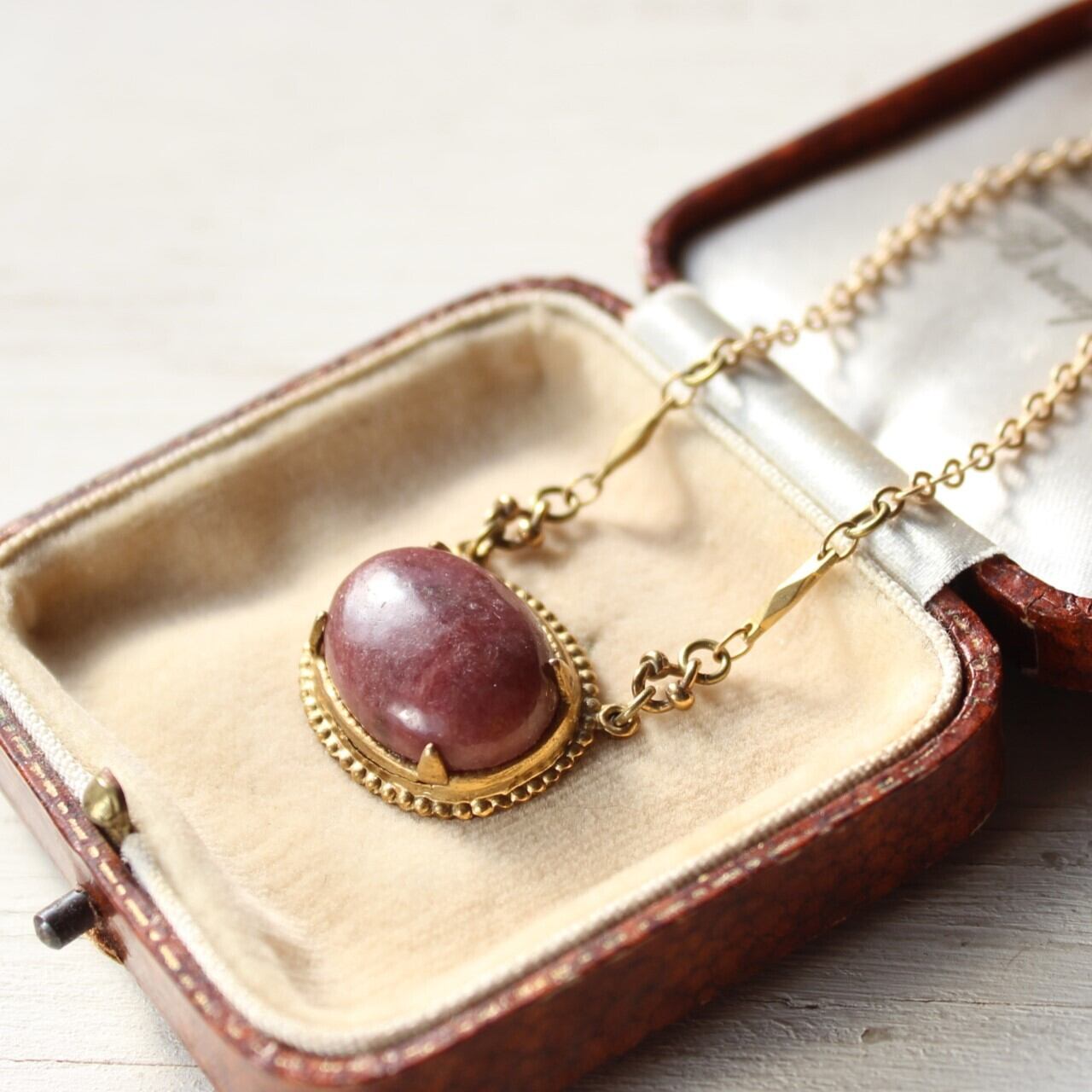 深みのある薔薇色 ロードナイト クラシカル・ペンダント・ネックレス