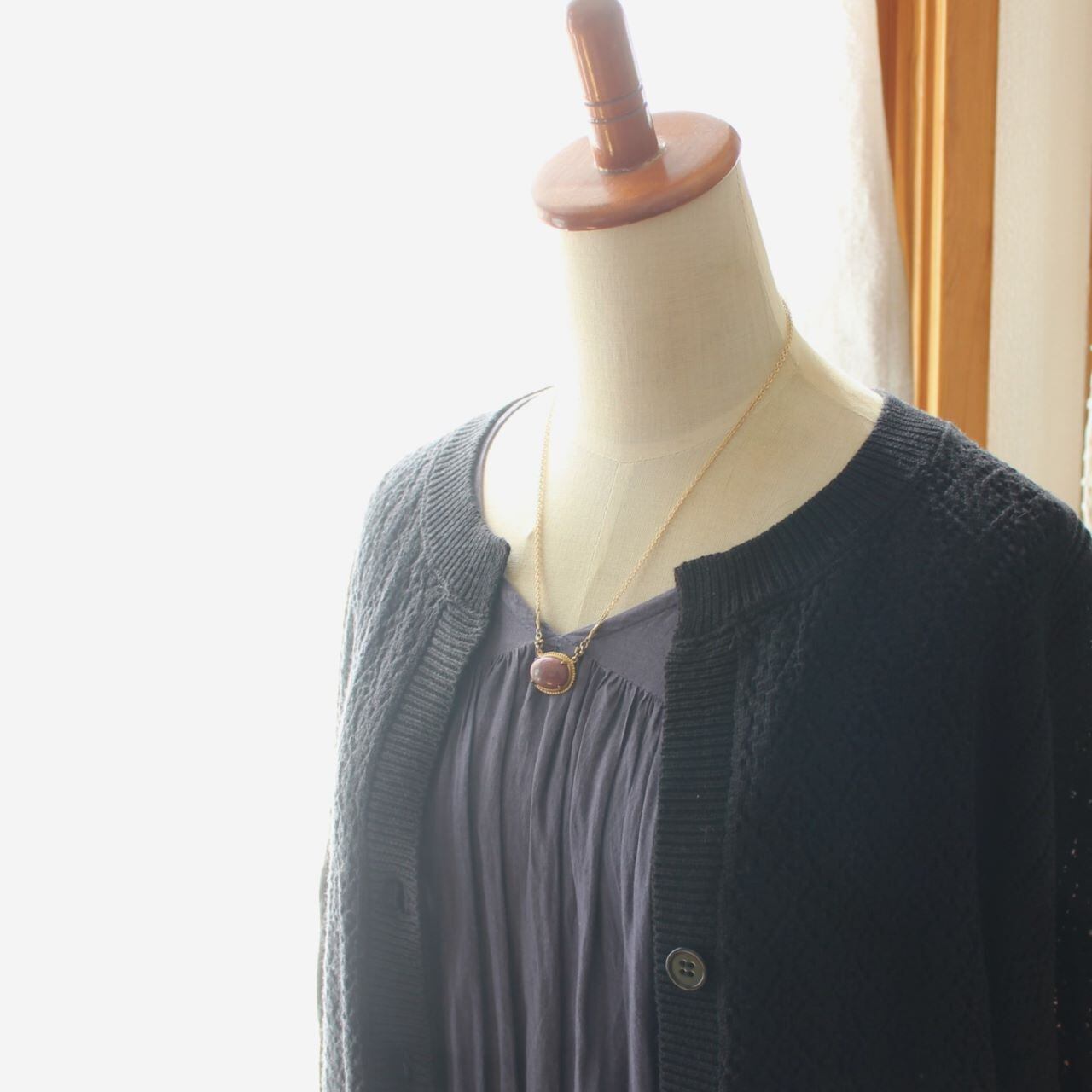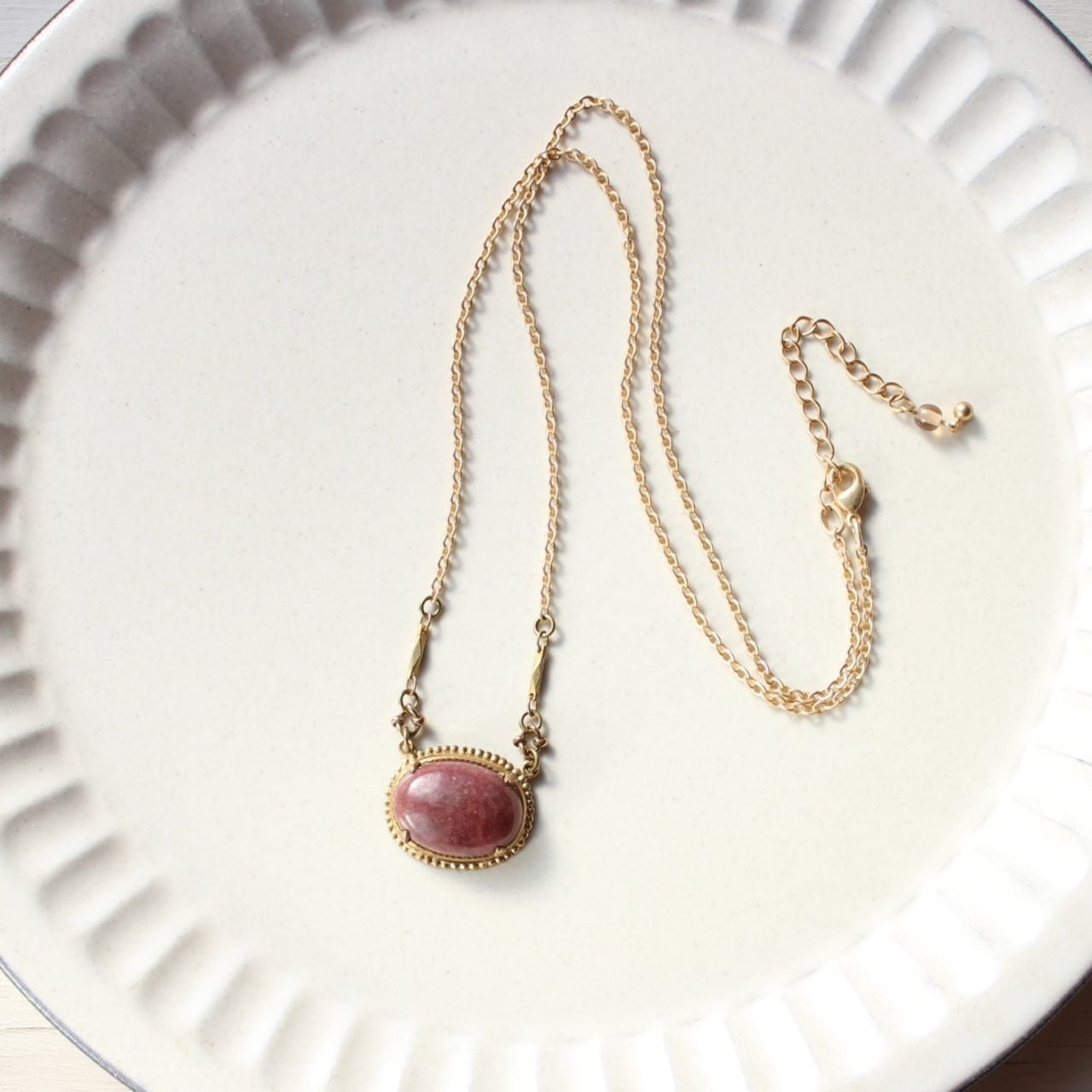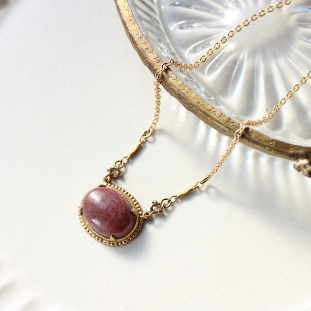 天然石ロードナイトを、クラシカルなムードに仕上げたペンダント・ネックレスです。