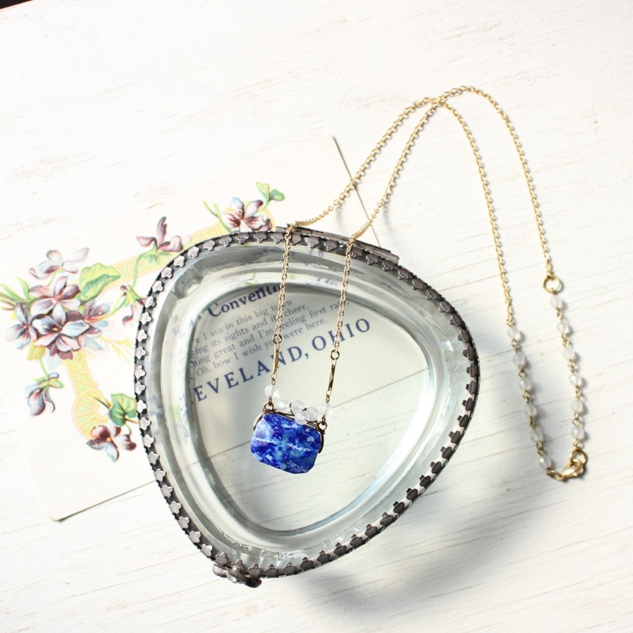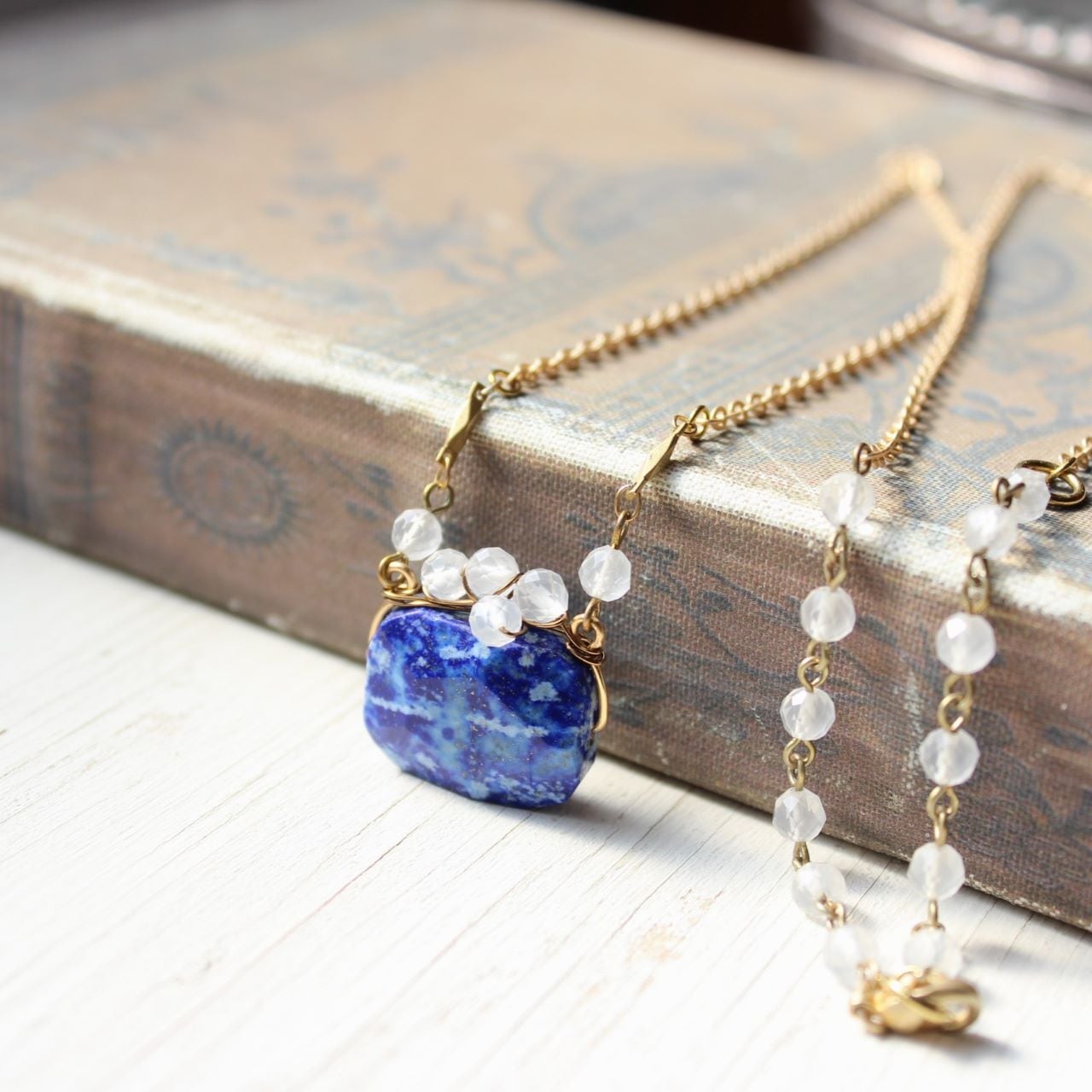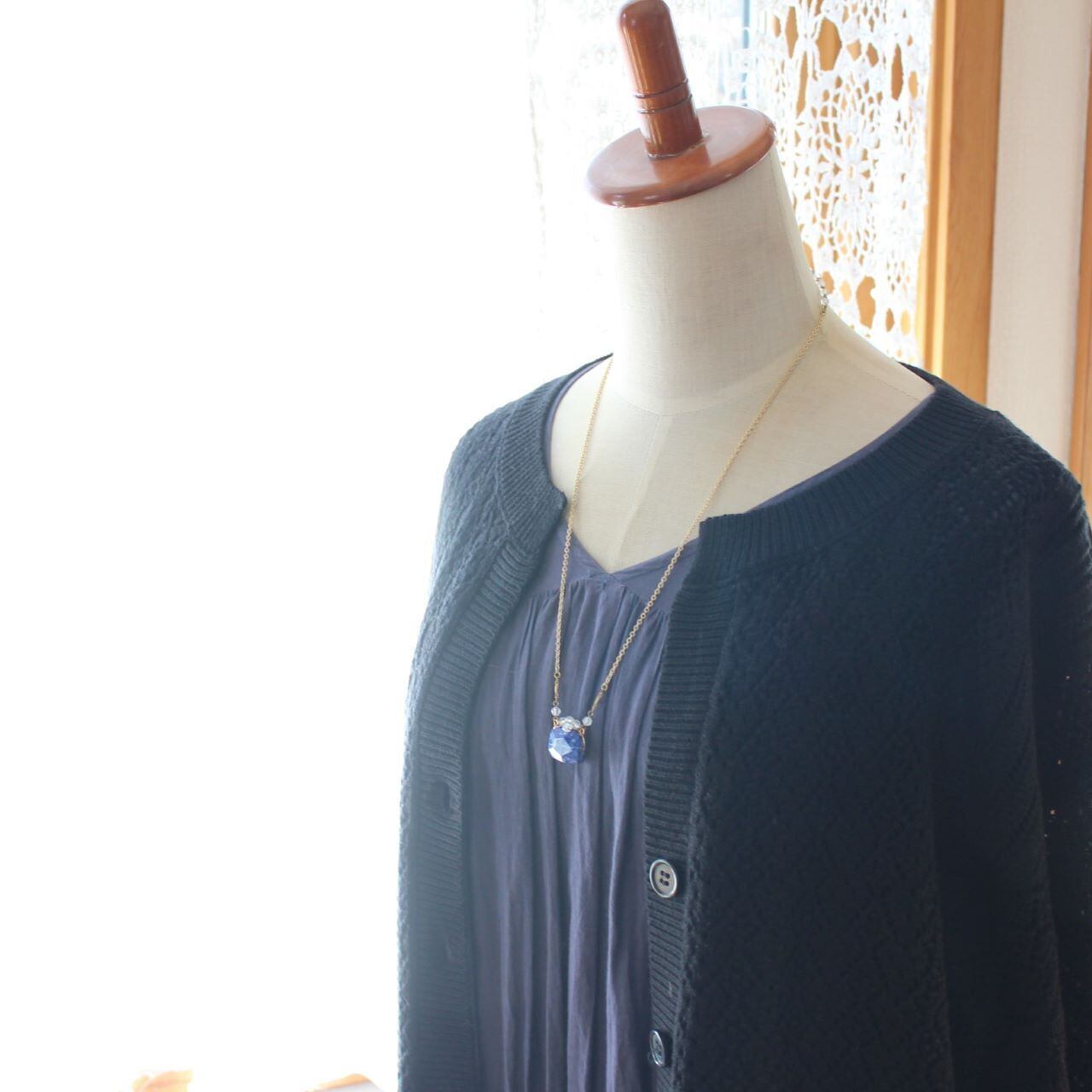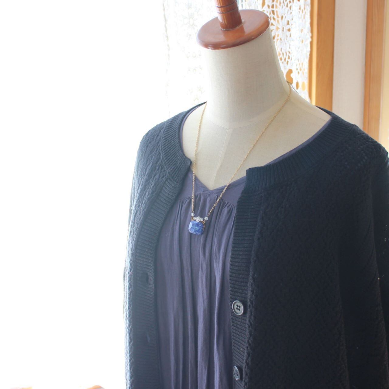 ラピスラズリに半透明の水晶をワイヤーワークしたペンダント・ネックレスは、ここだけにしかないTammy daisy のオリジナルデザイン。