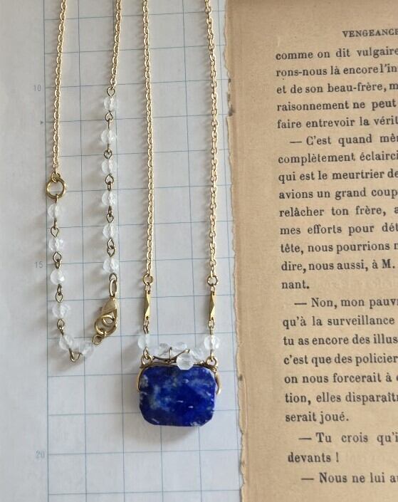 ポルトモネ・フランスのがま口みたいに愛らしい ラピスラズリと水晶 ペンダント・ネックレス マットゴールド バー