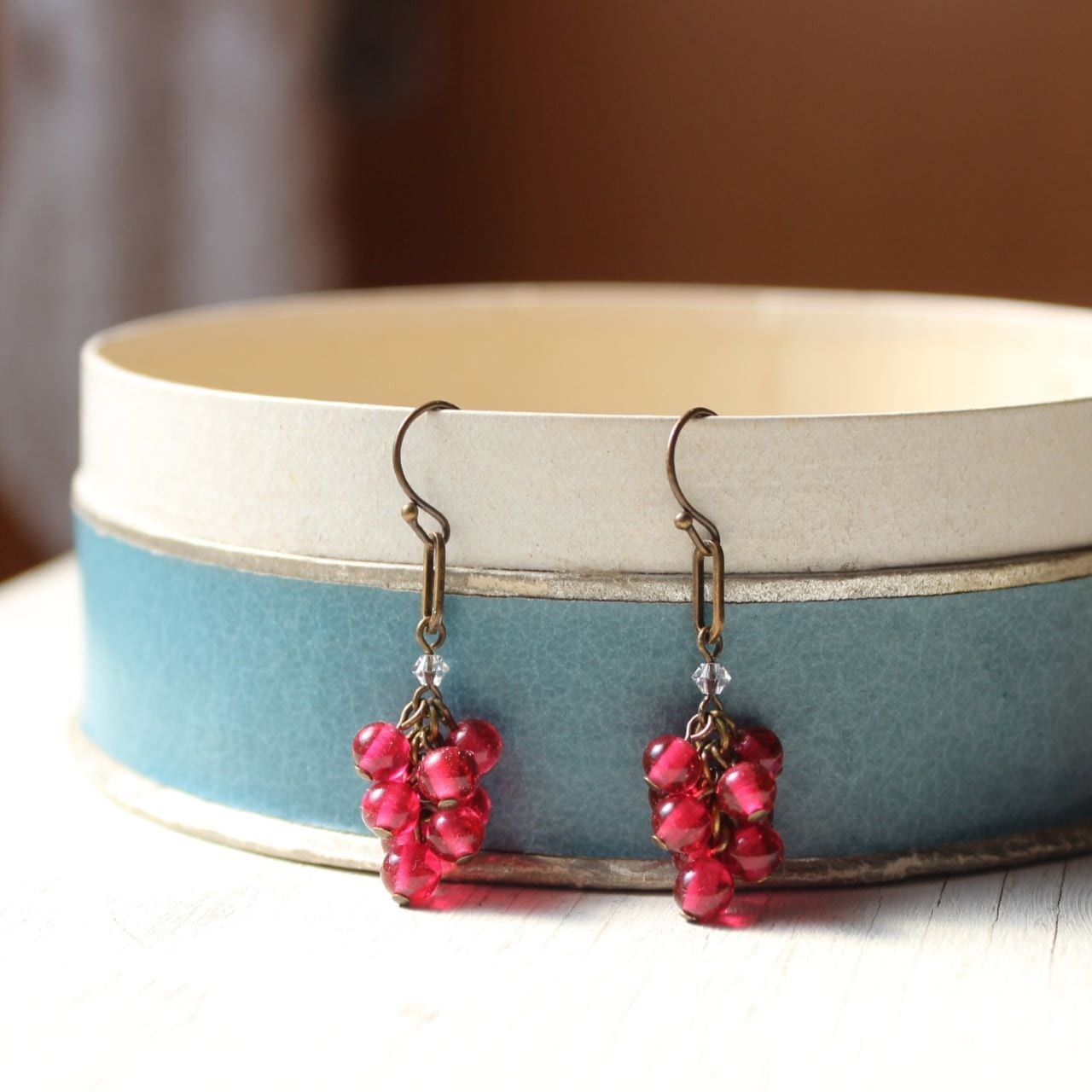 ミリアムハスケルの古いビーズで ローズ色の揺れるピアス(イヤリング)