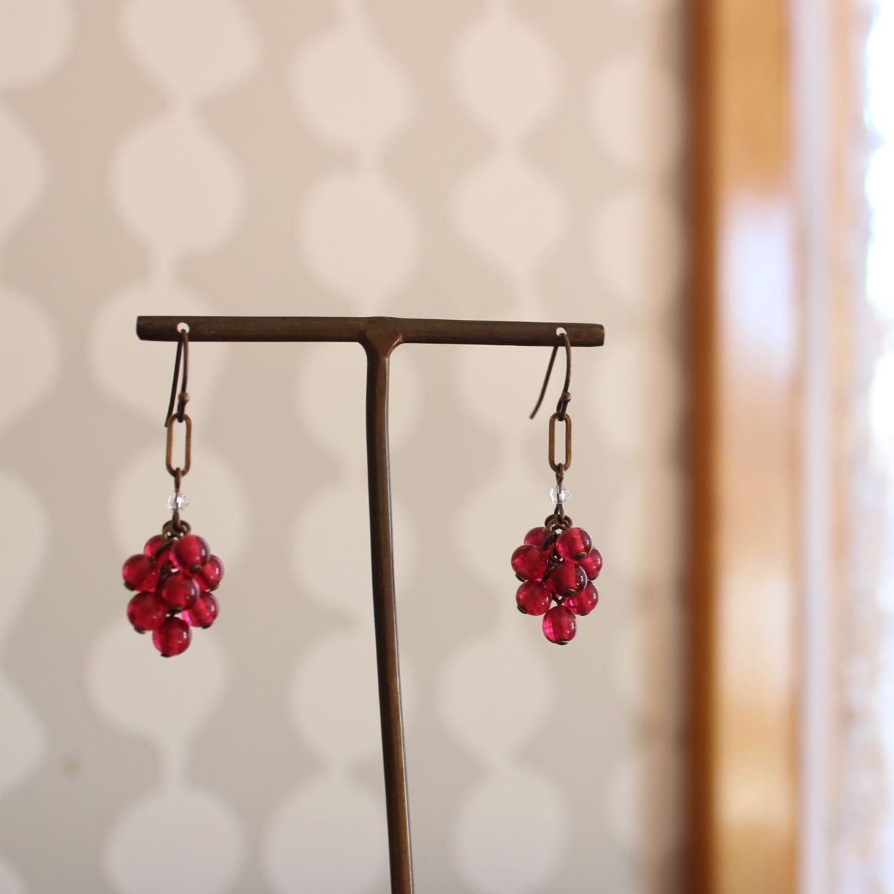 そんな美しいビーズを用いて、優しく揺れるピアスに仕立てました。スッとしたフォルムですので、可愛くなりすぎずに着けていただけます。