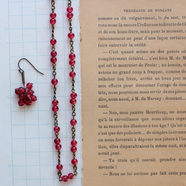 古いローズ色のガラスビーズは、コスチュームジュエリーの女王と称される「ミリアムハスケル」のジュエリーと同じもの。1950年代に作られた、ヴィンテージのガラスビーズです。