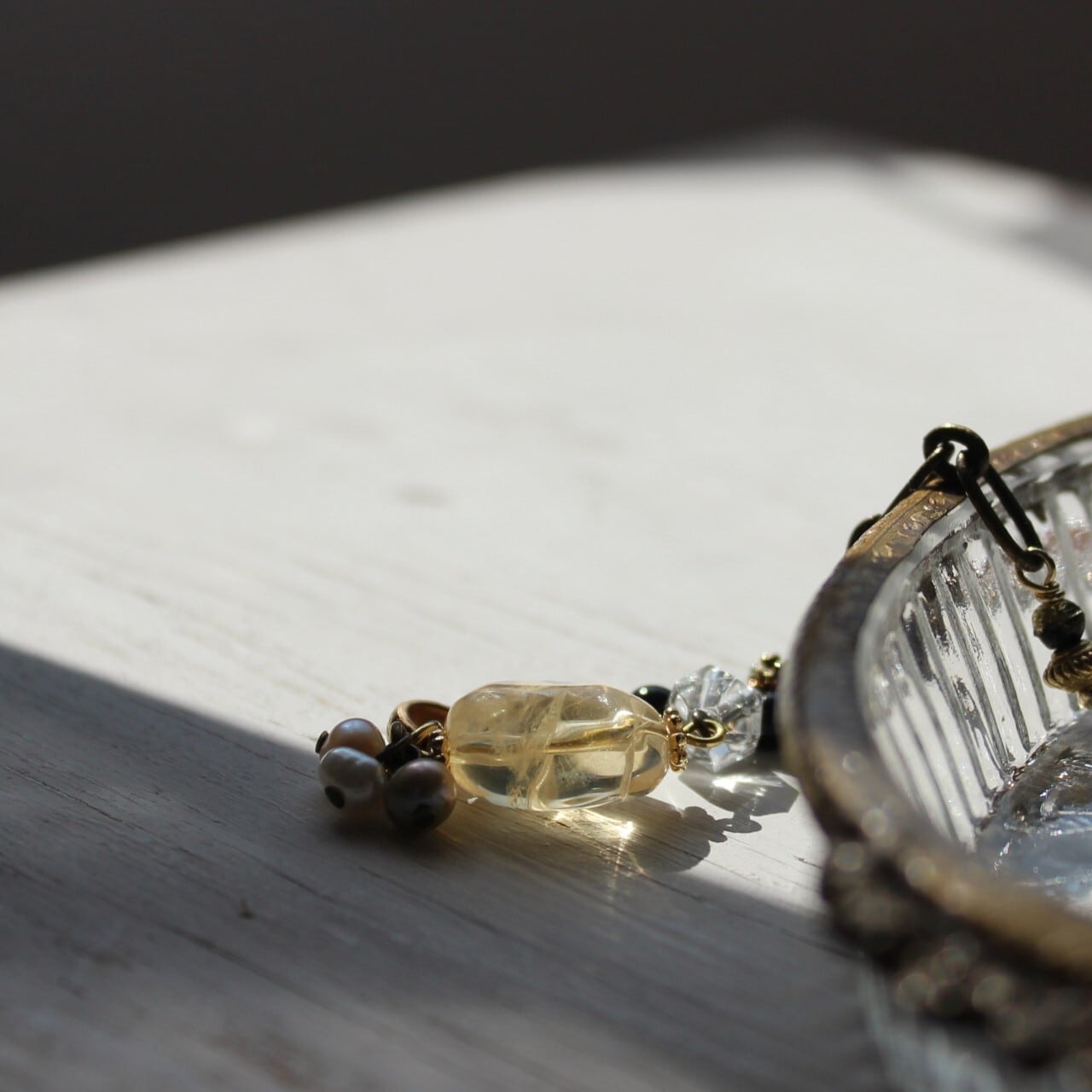 ※ シトリンの透明感を損なわないよう、こちらのみ、明るい真鍮色のピンを使っています。