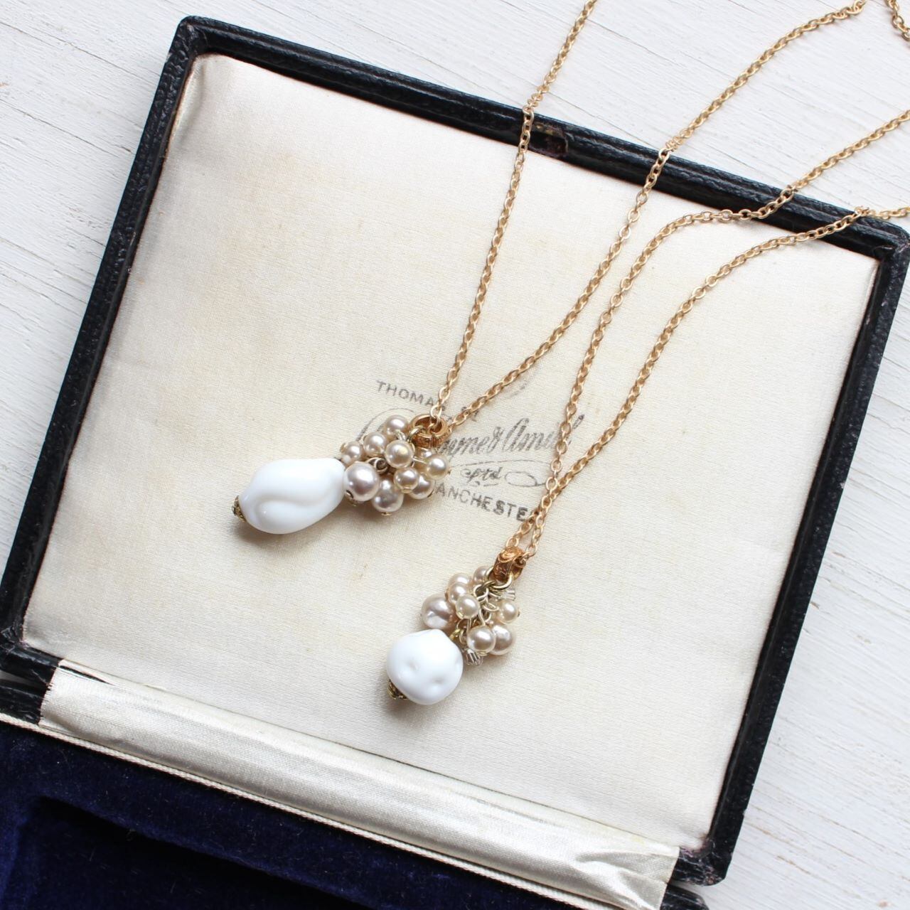 ※ ヴィンテージガラスパールは、現行のパールよりも繊細な素材を使っています。強い衝撃を避け、やさしくお取り扱いいただきますようお願いいたします。