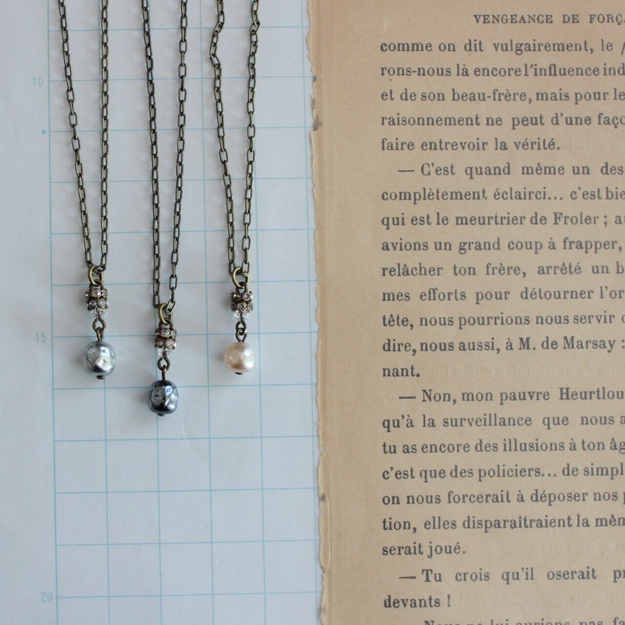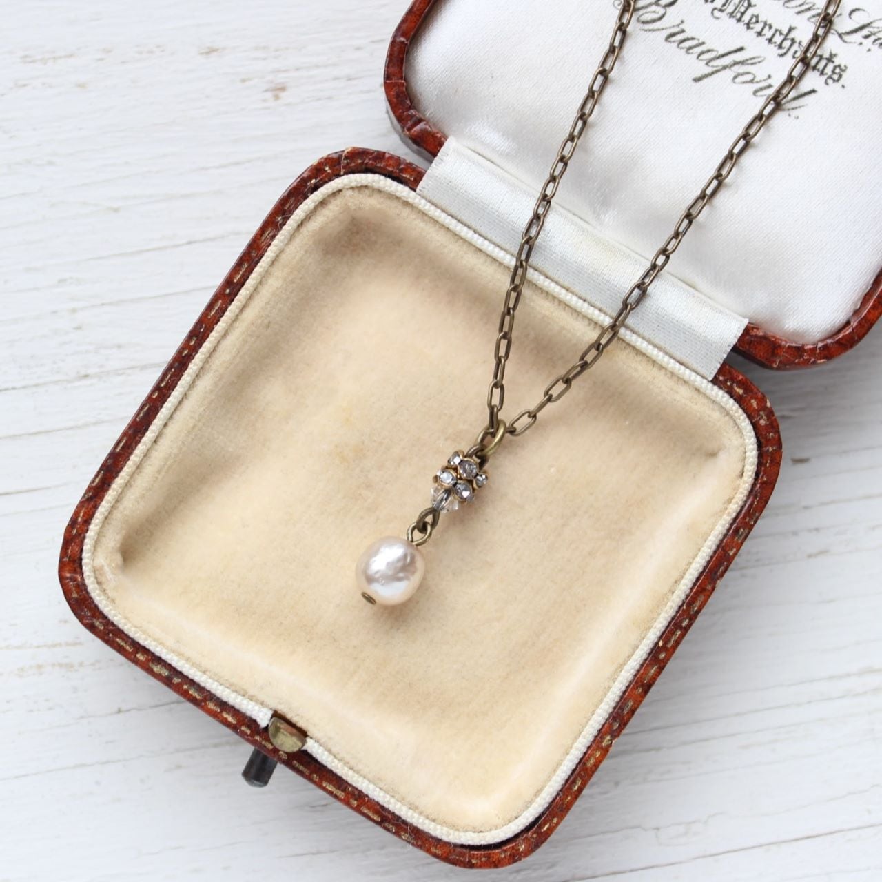 ミリアム・ハスケルのNIKIパール 一粒ペンダント・ネックレス ヴィンテージ ピンクかかった淡いセピア色