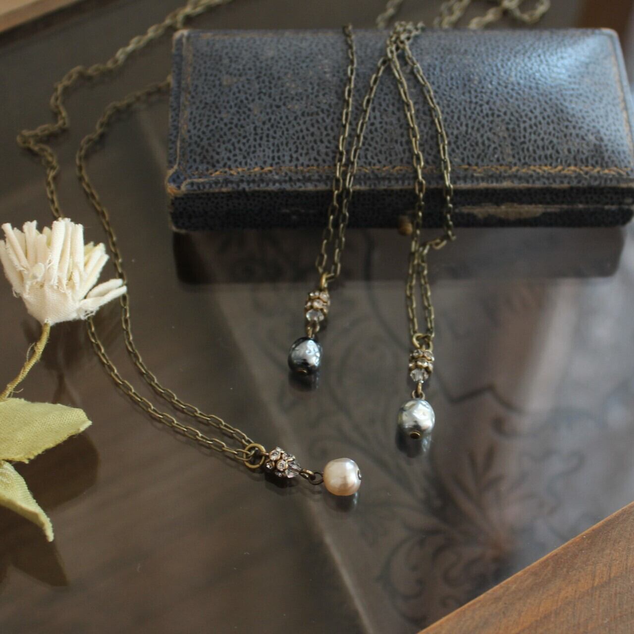 何十年もの時を経て、日本へ里帰りしてきた美しいガラスパール。そんなストーリーのあるものを身にに着けるのは、ちょっとロマンを感じますね。