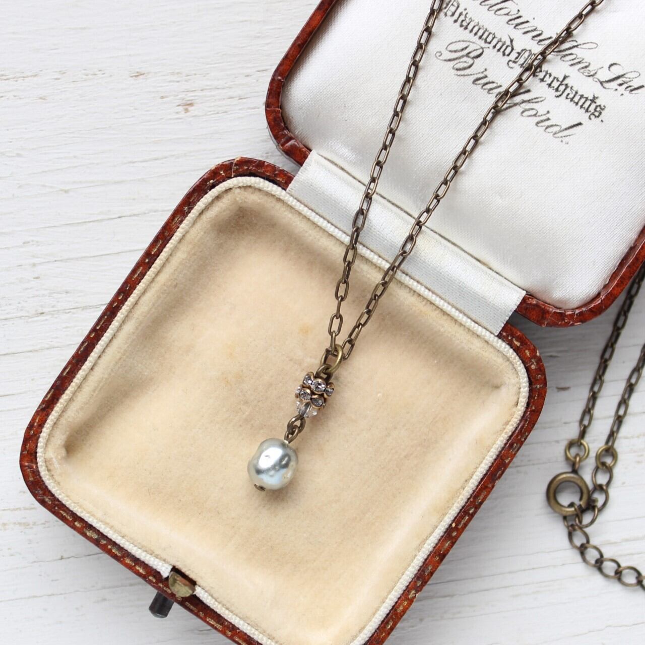 そんな、美しいパールを更に引き立てるように、ラインストーンとスワロフスキークリスタルの煌めきをあしらい、小さなペンダントに仕立てました。
