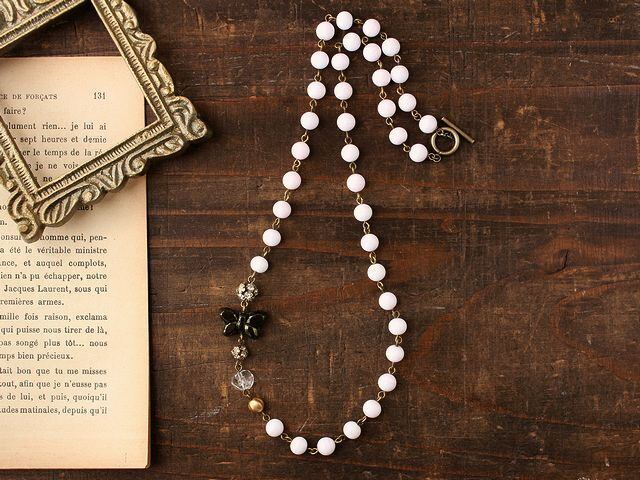 デッドストックビーズに、バタフライ(ヴィンテージ)をあしらったネックレスです。