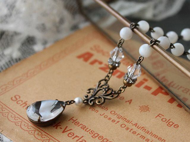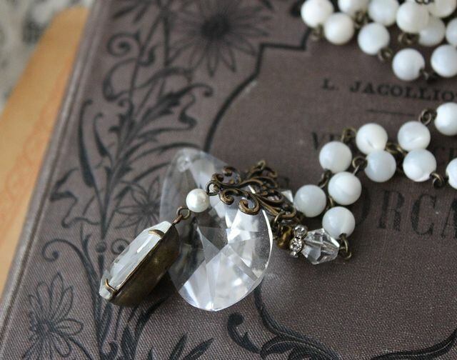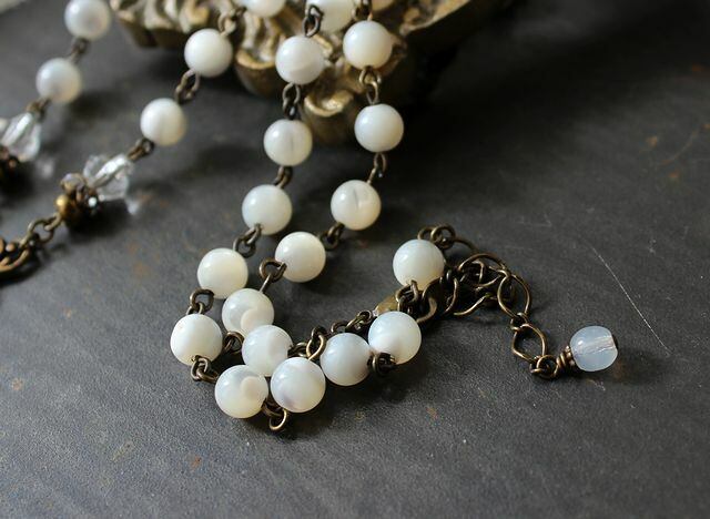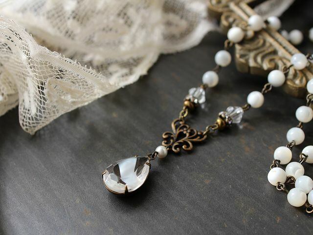 ヴィンテージ・ギブレグラスとマザーオブパール 清らかな白のネックレス アンティークstyle