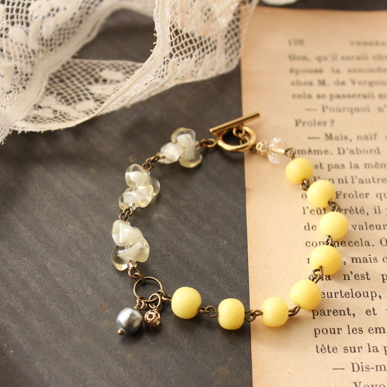 二種類のイエローガラスビーズを使ったブレスレットです。