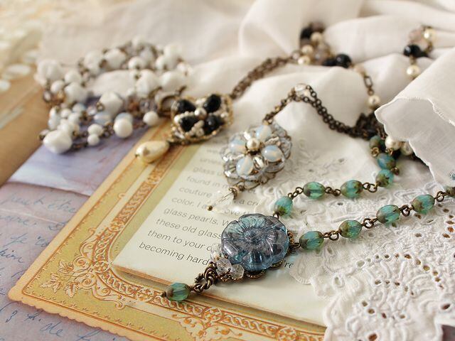 チェコの美しいガラスを使った、クラシカルで可愛らしいデザインのネックレスです。
