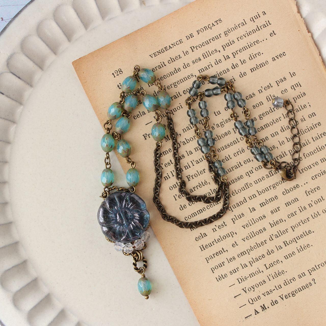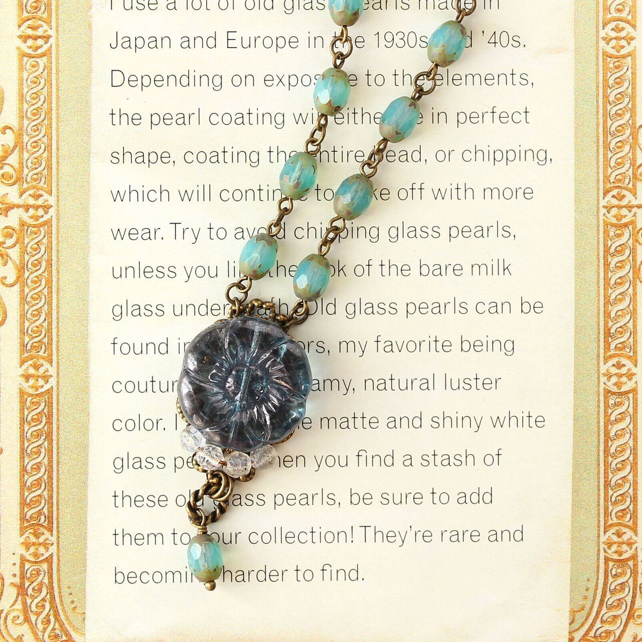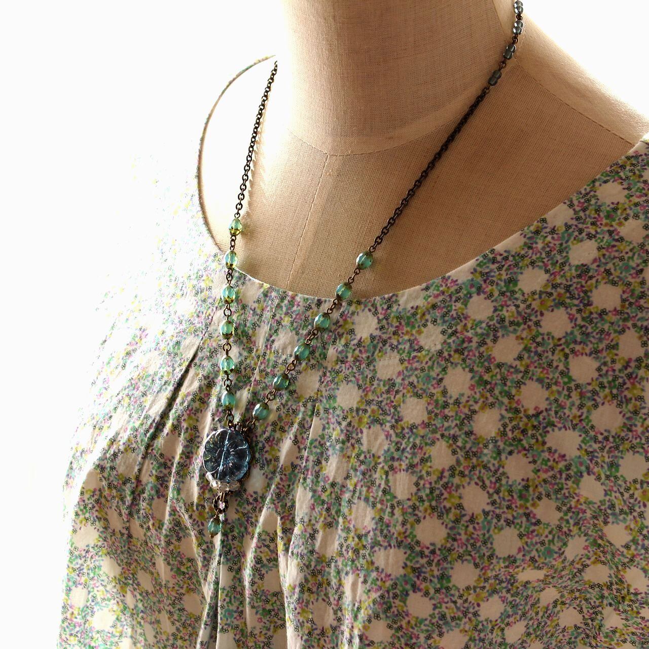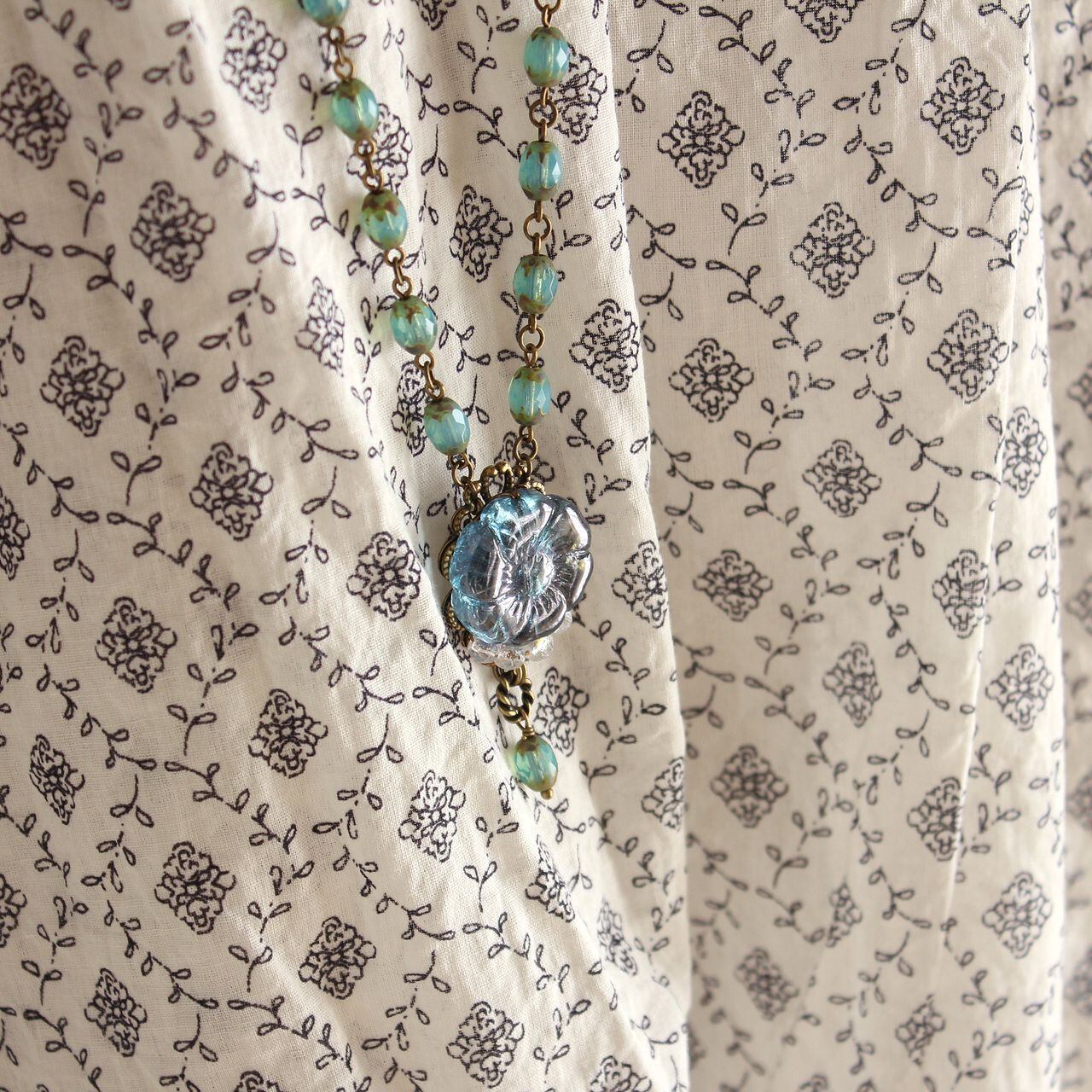 マドンナブルーのガラスの花 涼やか色のクラシカルなネックレス ヴィンテージ・アンティークstyle