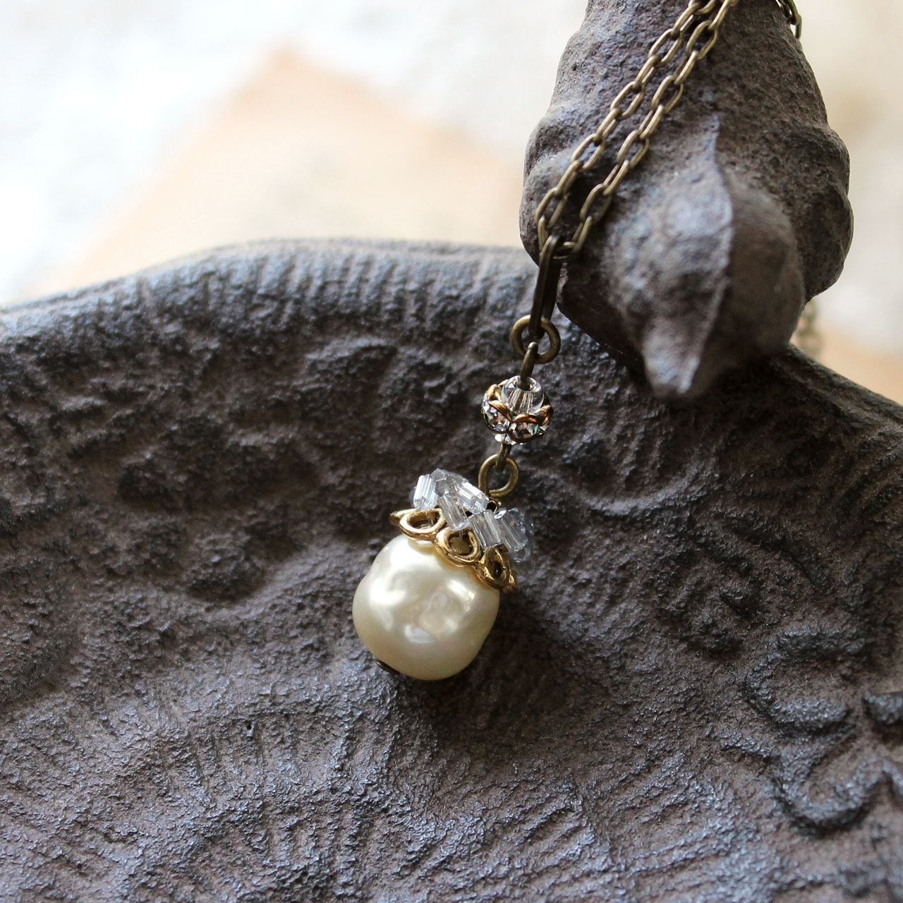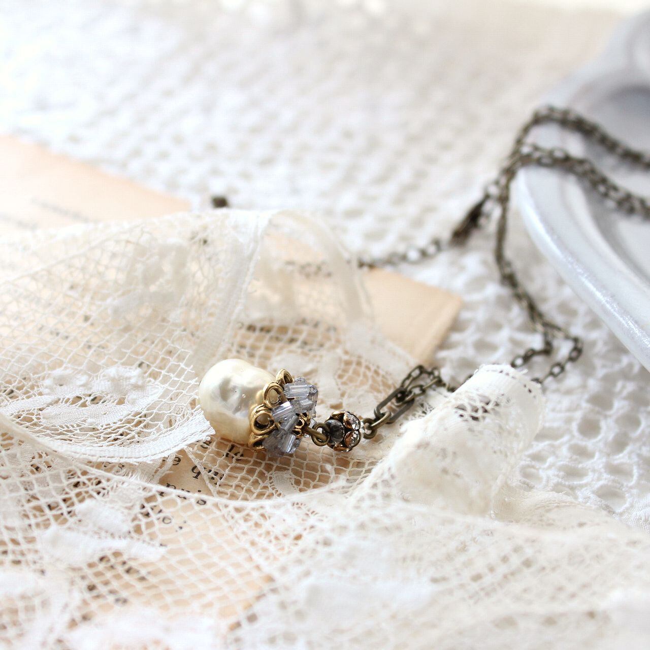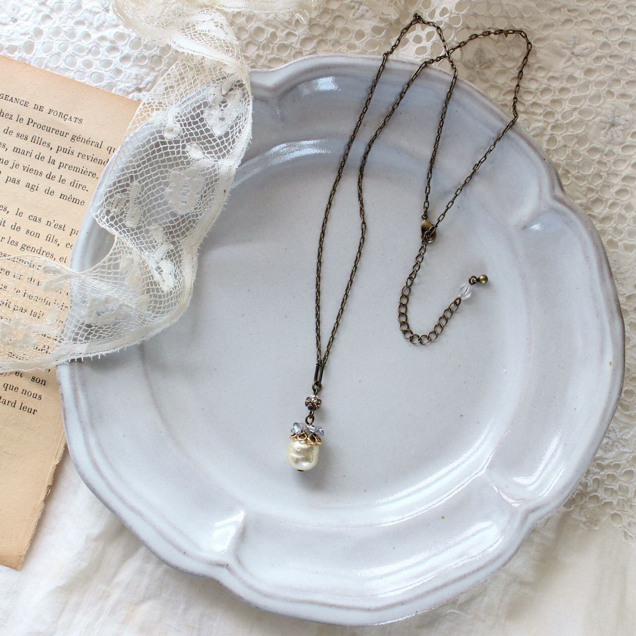 フランス・アンティークビーズとバロックガラスパール ニュアンスブルーのネックレス ペンダント コスチュームジュエリー《ブロッサム・クラウン シリーズ》