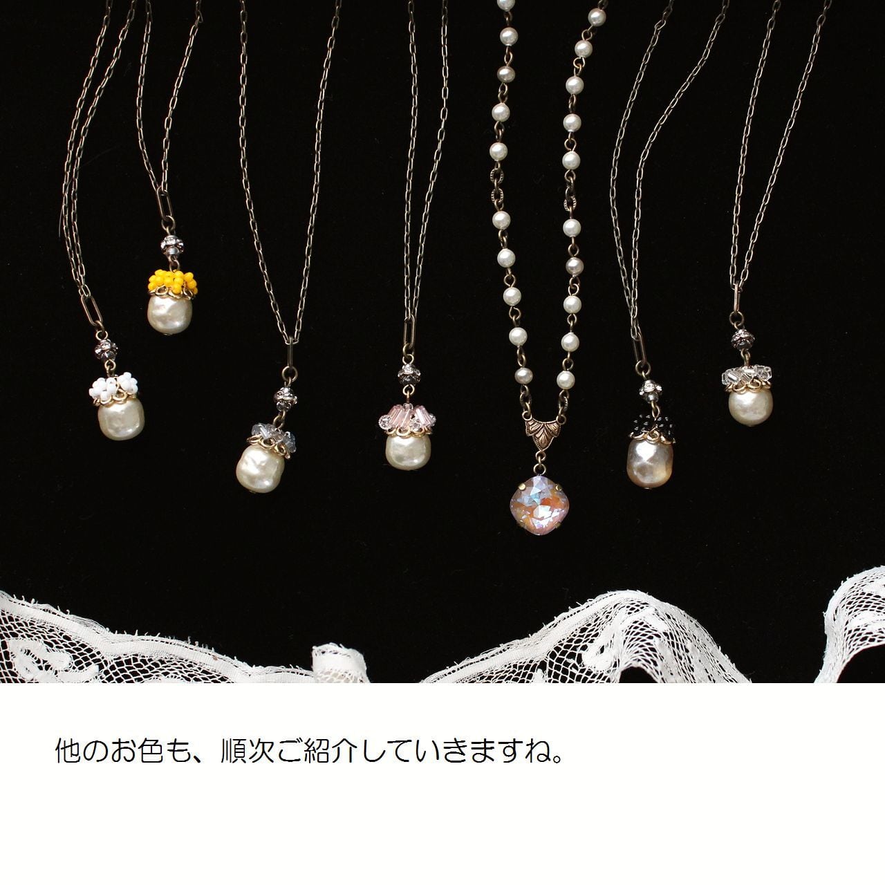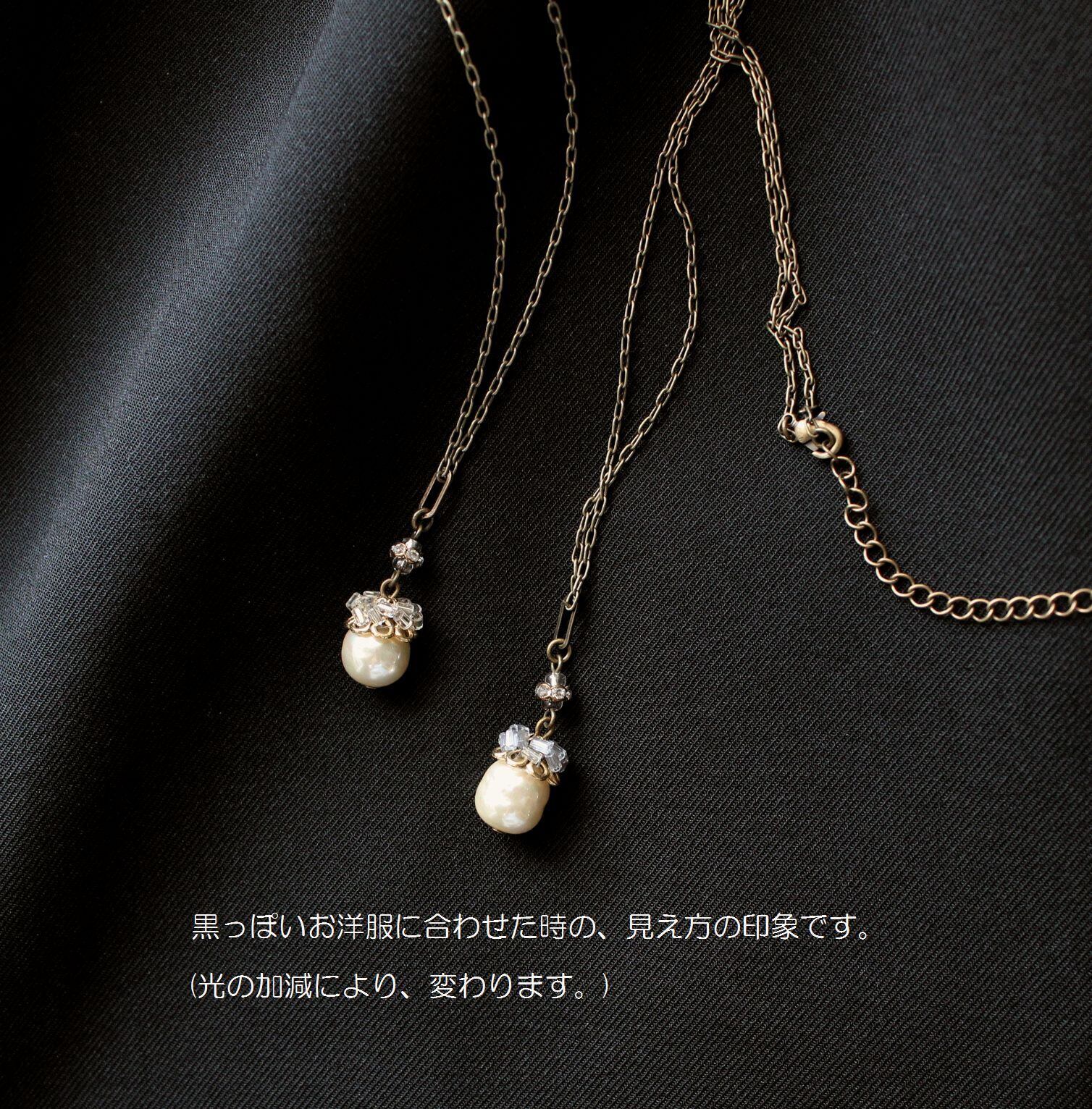 と言っても、コネクター部分は、ちょっぴり辛口にピリリと仕上げていますし、チェーンもシックなアンティークカラーですので、可愛くなりすぎることもなく、大人の女性が品よく着けていただけます。