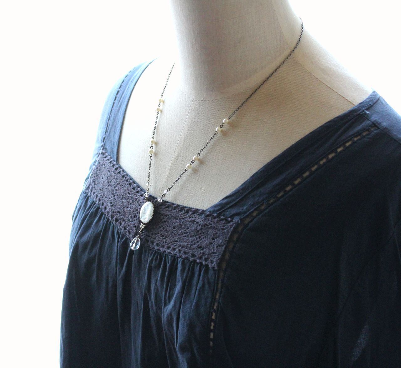 アンティークでフェミニンな表情のネックレスを、お楽しみください。