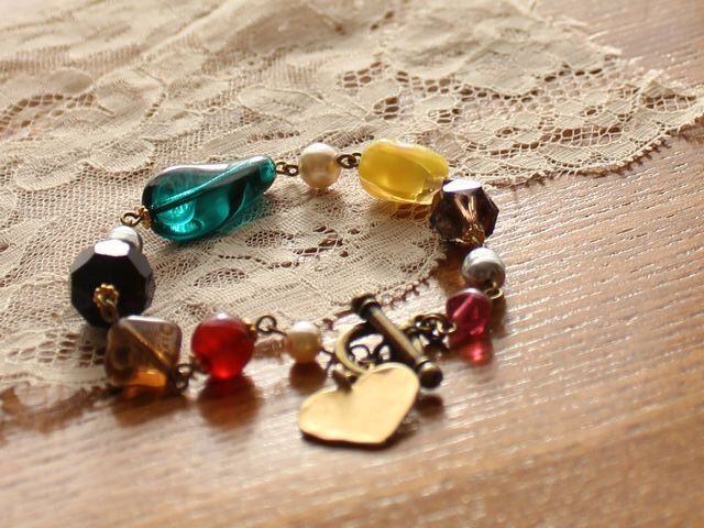 レトロな色合いが楽しい、ミックスカラーのブレスレット。