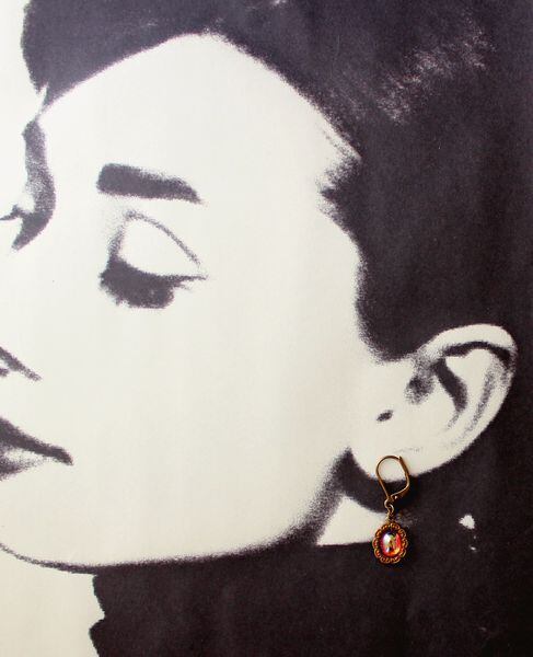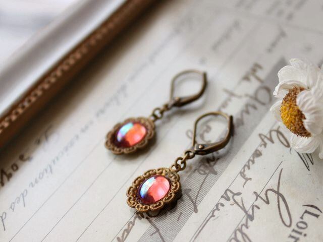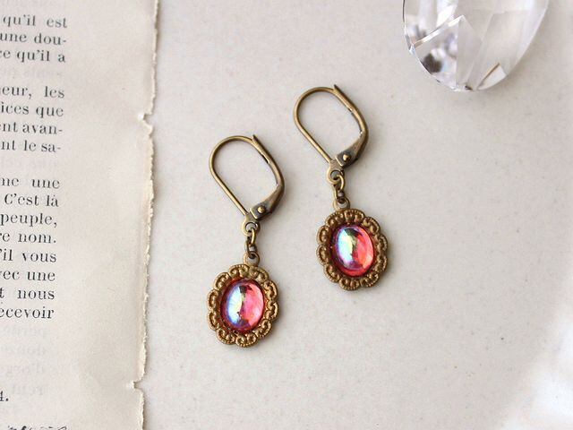 愛らしいローズ色のカボションも、趣のあるフレンチフックを選んでいるので、甘くなりすぎず、スタイリッシュな仕上がりに。