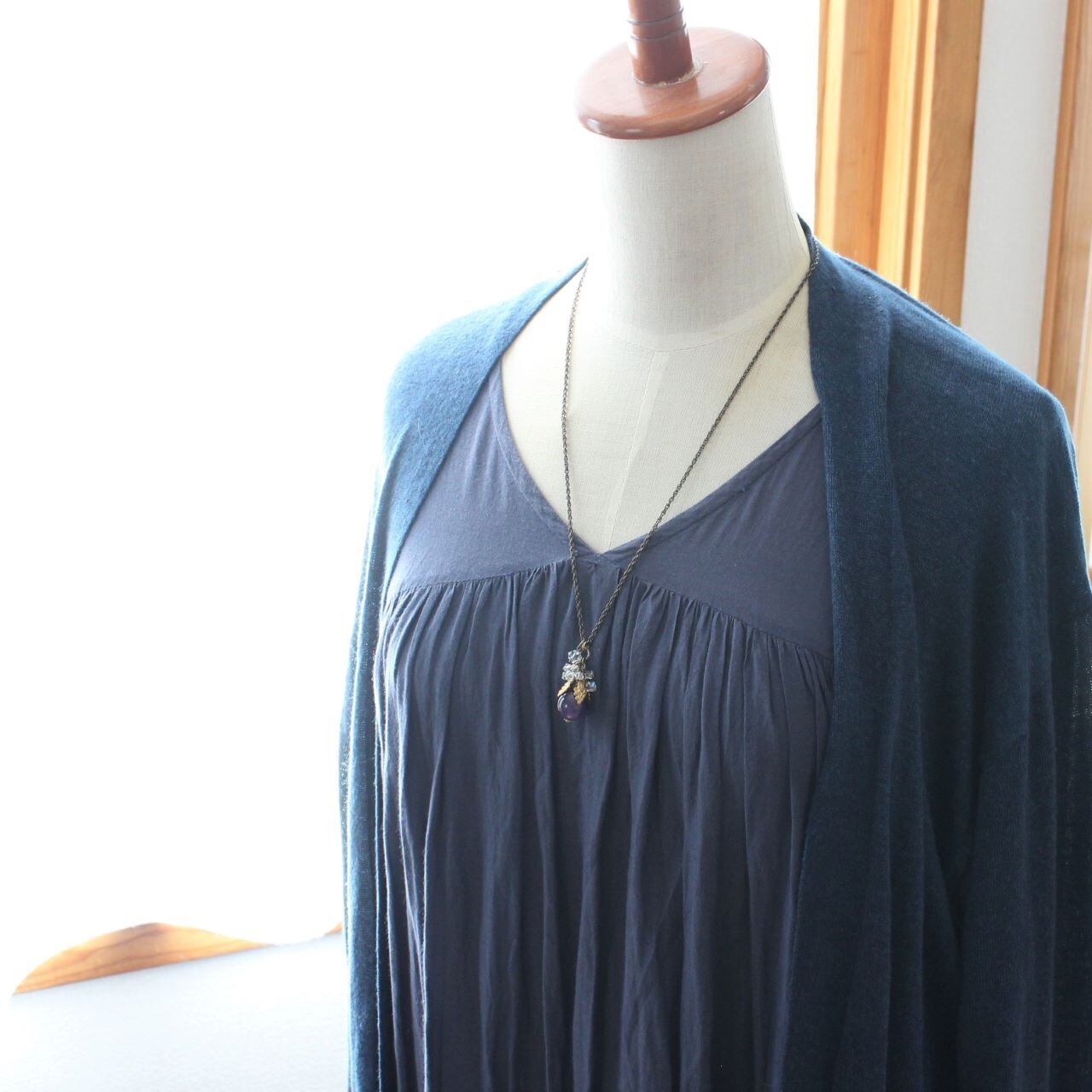 淡い色のお洋服では、アメジストの印象が前に出ます。