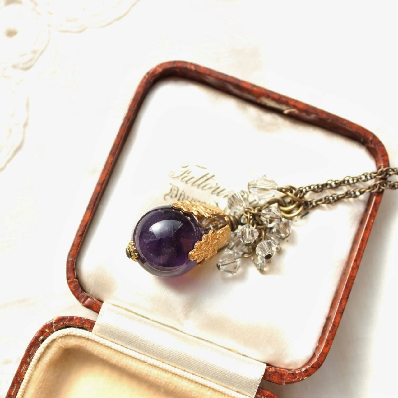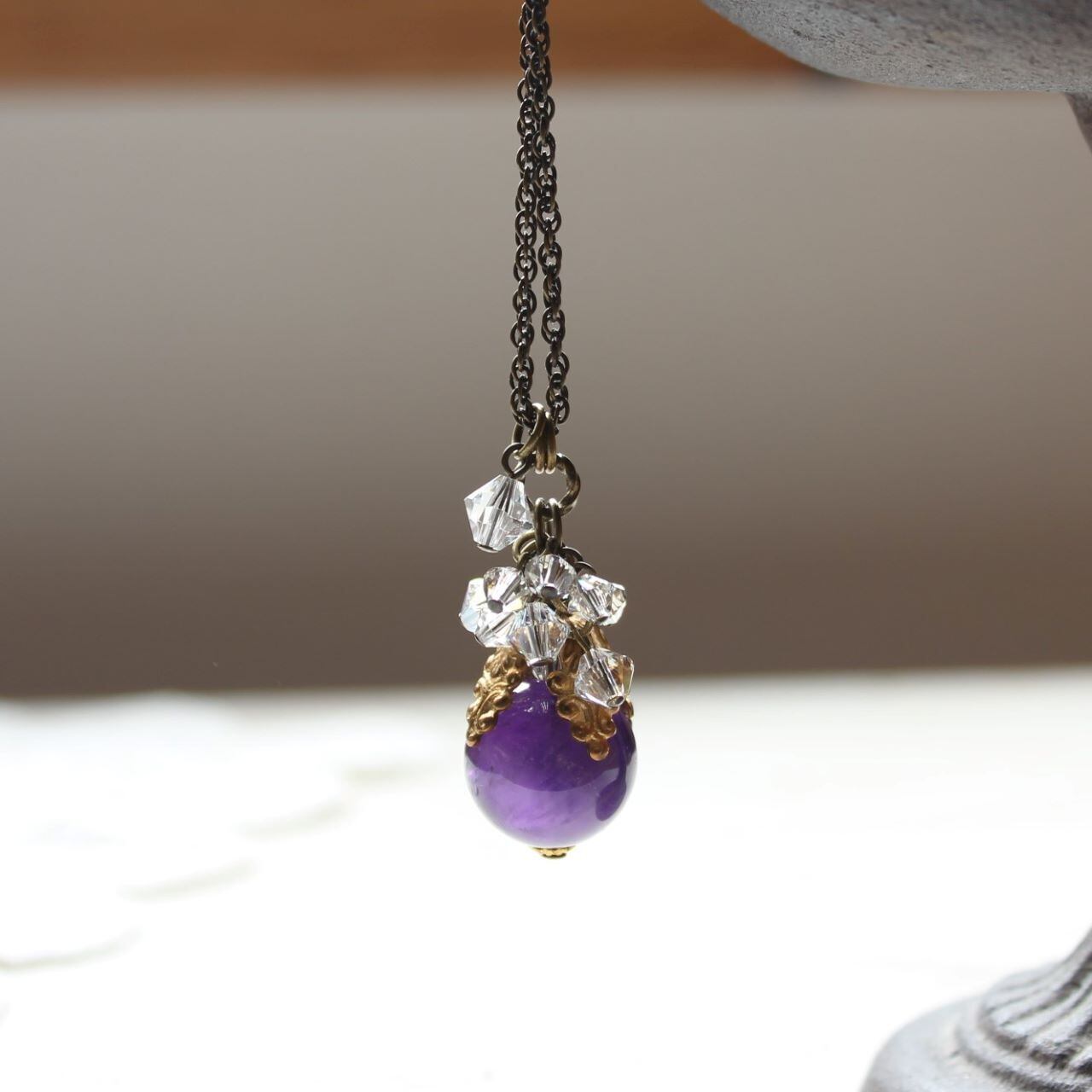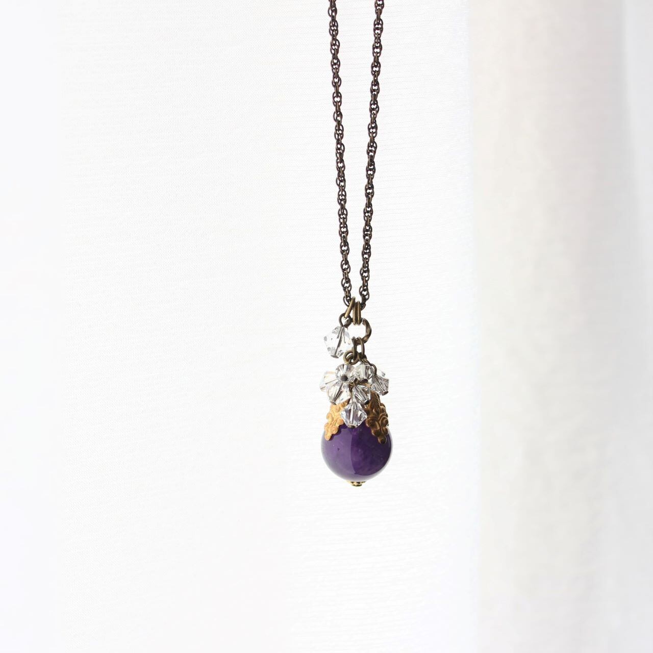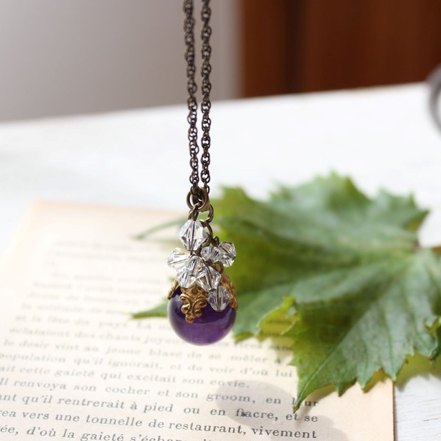 葡萄色(アメジスト・スワロフスキー)こぼれる雫のペンダント・ネックレス ヴィンテージ・アンティークstyle