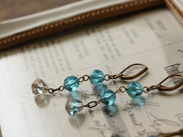 ロザリン&アクアマリンカラー ヴィンテージ・ガラスビーズのピアス