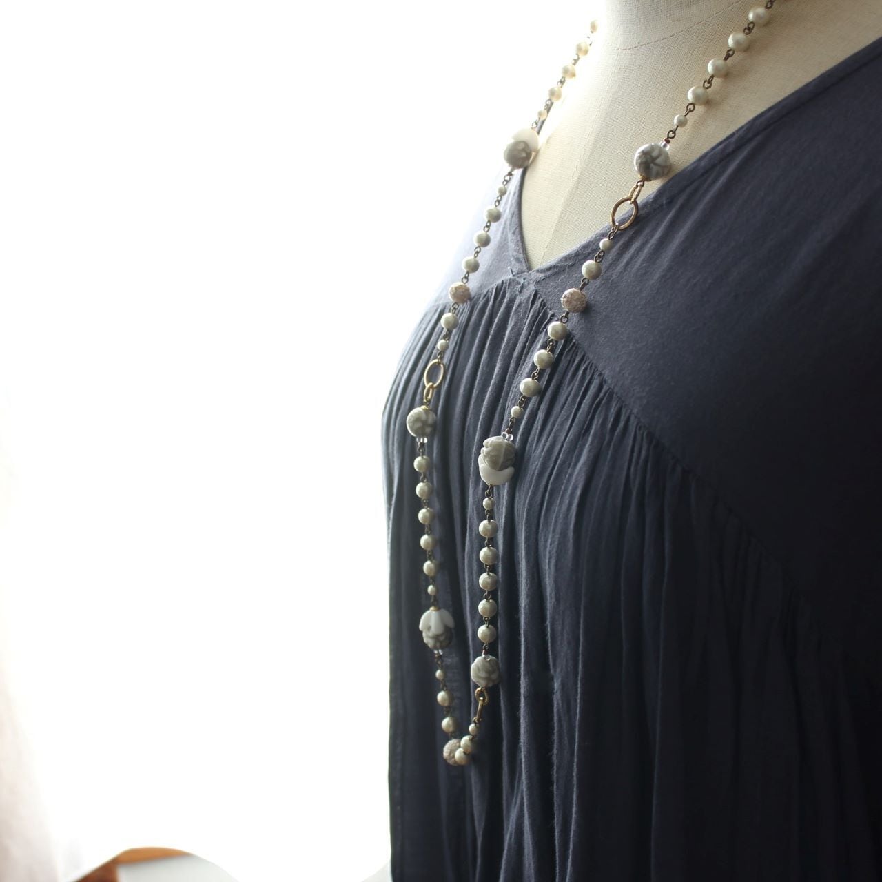 こちらのタイプのロングネックレスは、何度かご紹介させていただいていますが、今回は、コットンパールをセレクト。