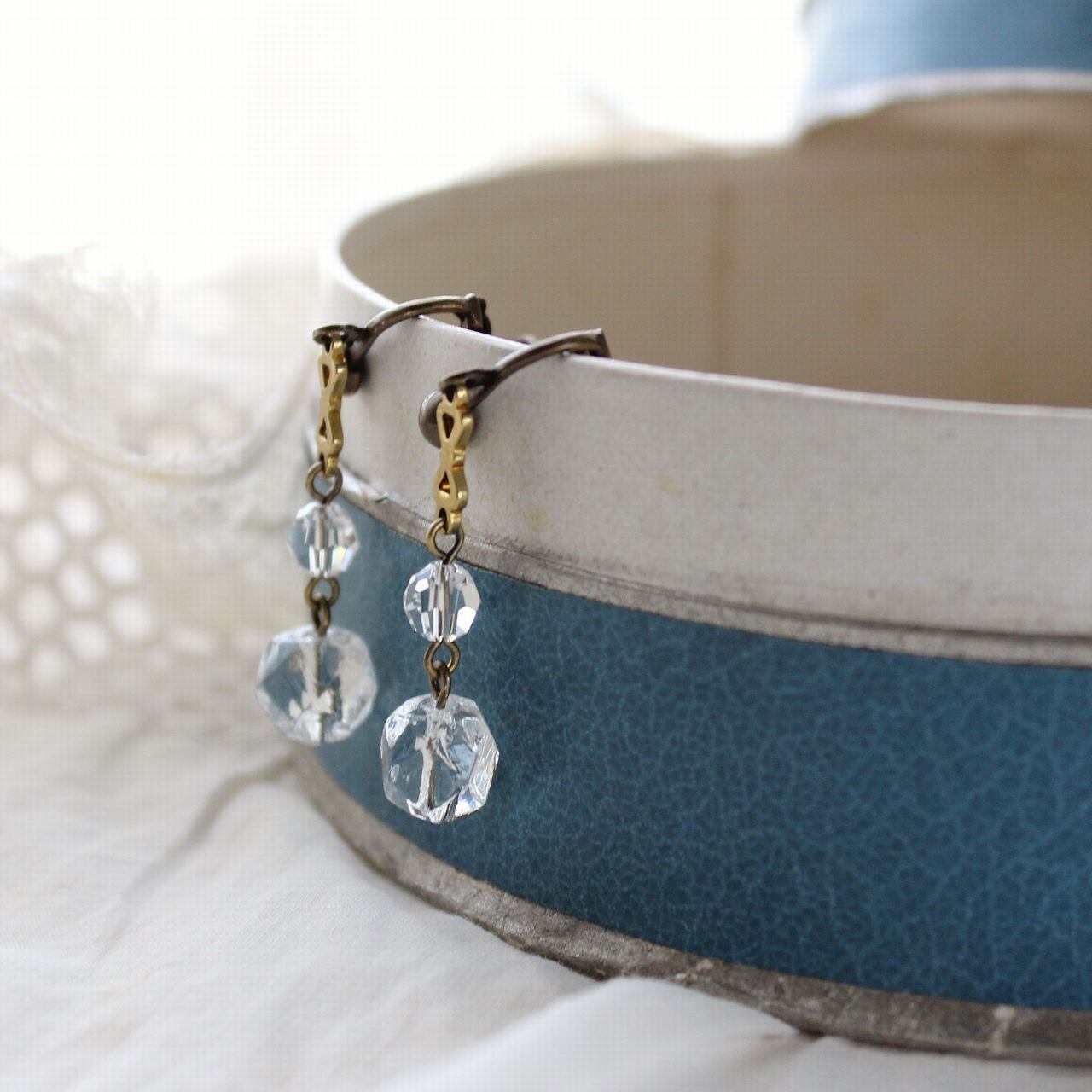 氷のような、ドイツ・ヴィンテージガラスのイヤリング ピアス アンティークstyle