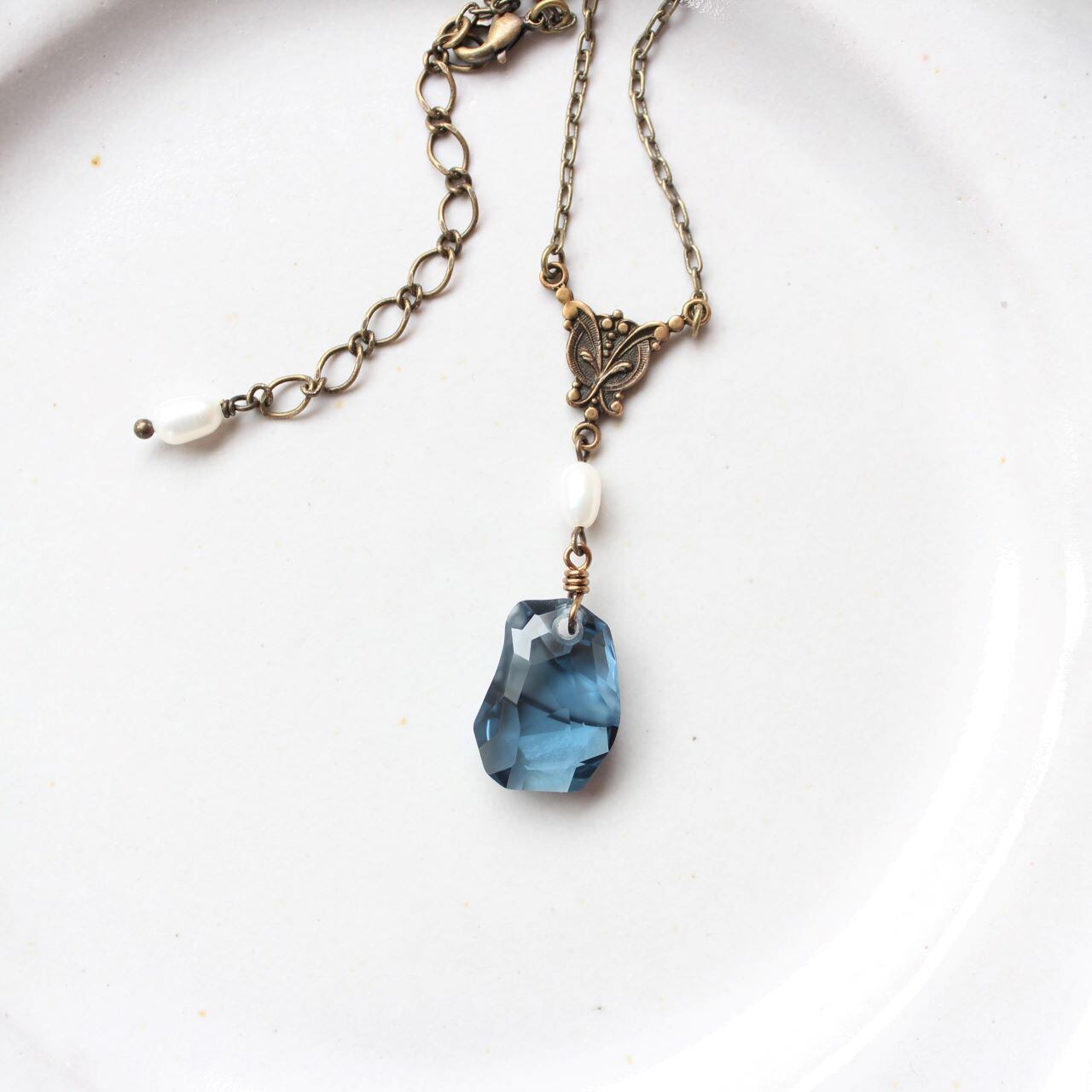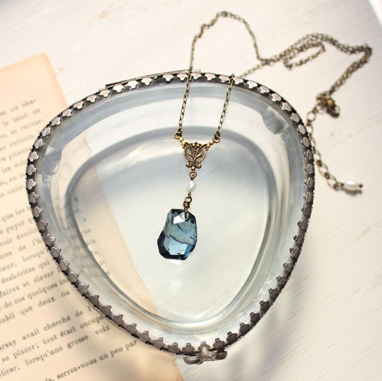 限定レアな形のスワロフスキークリスタルを、アンティークstyleに仕上げたペンダント・ネックレスです。(お色は、モンタナブルーです。)