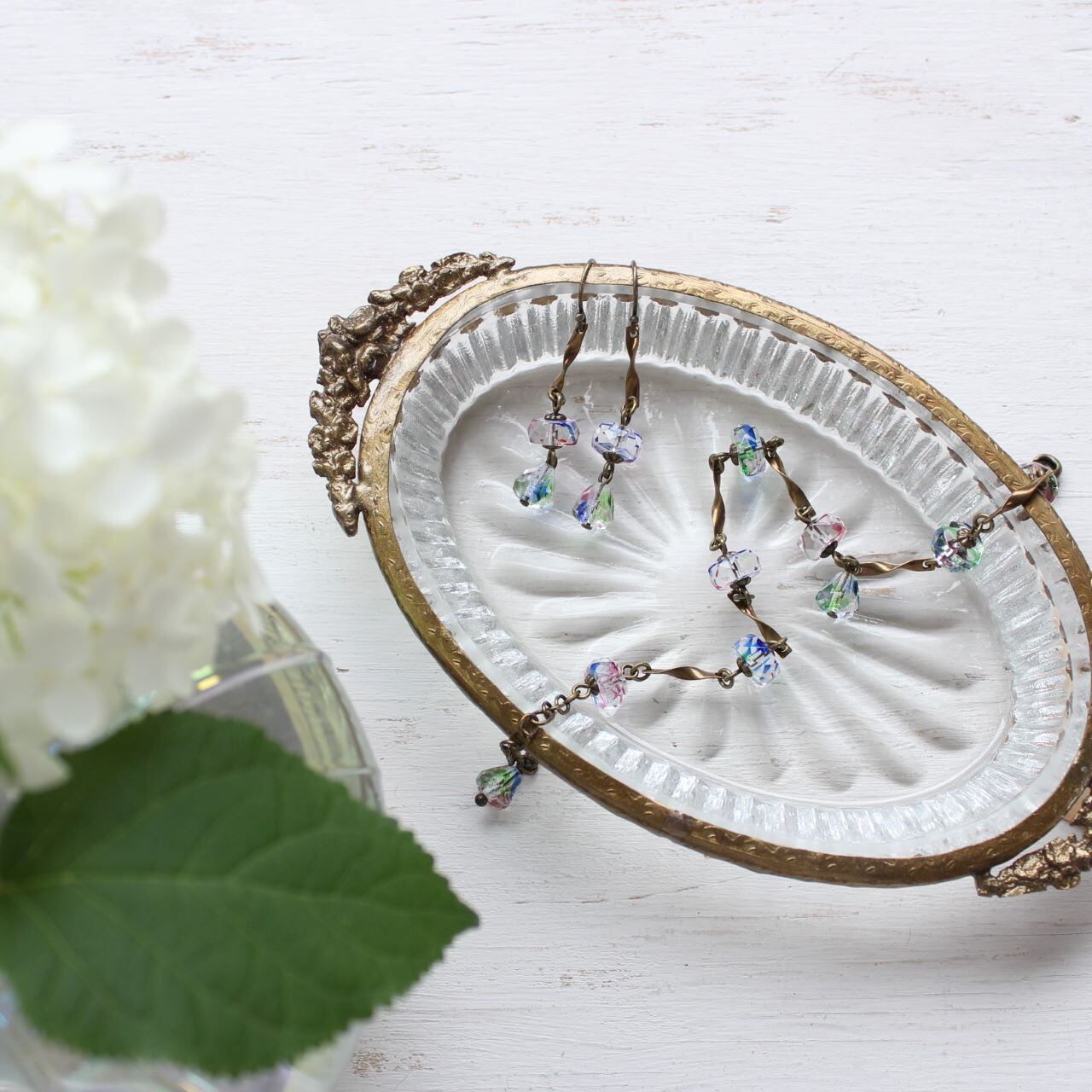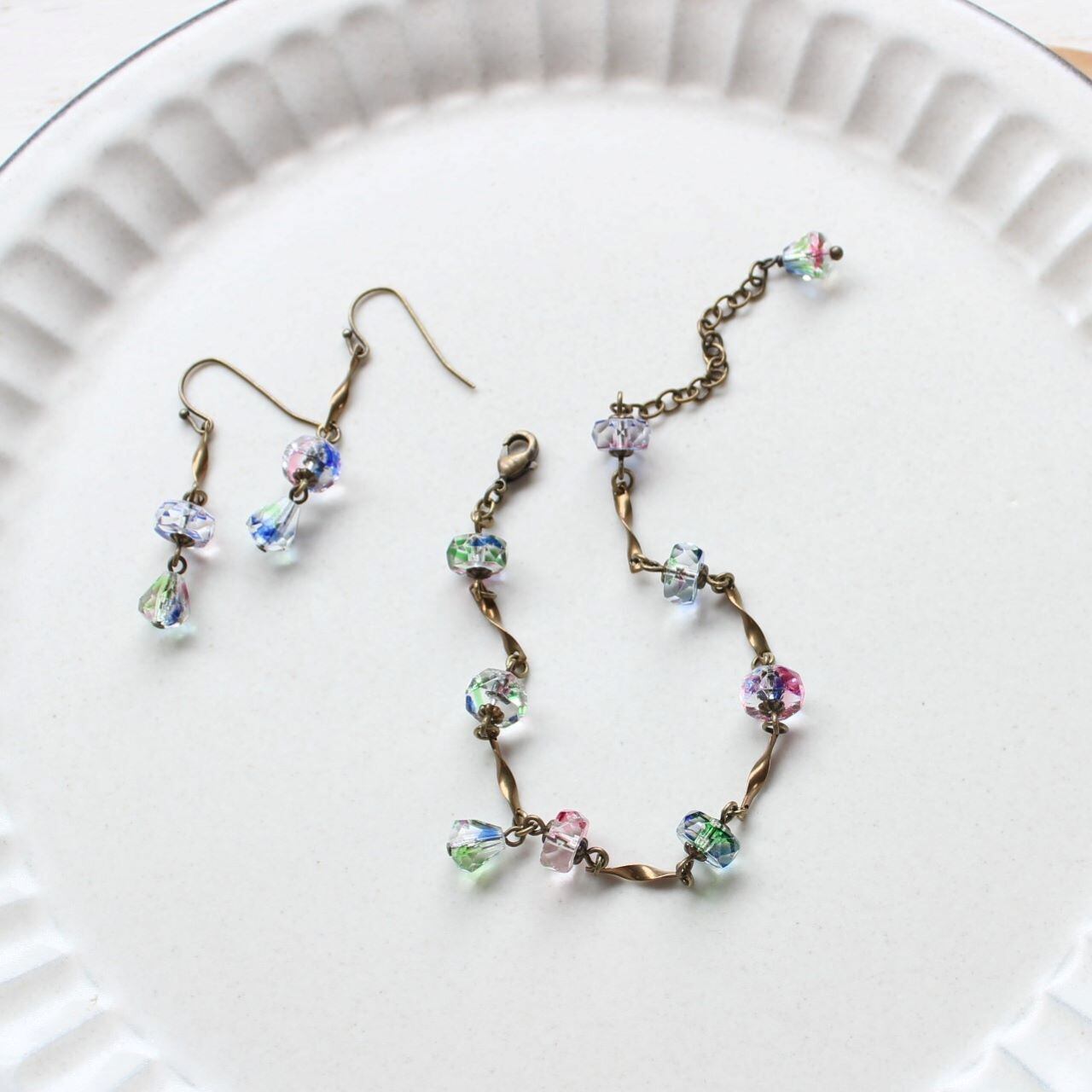 アイリスガラス・ヴィンテージ 大人のロマンティック、虹を閉じ込めたブレスレット アンティークスタイル(ピアス・イヤリング オプション)