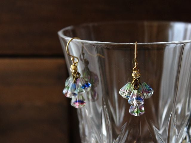着けてみると、透明感のある虹色のガラスがゆらゆらと揺れ、