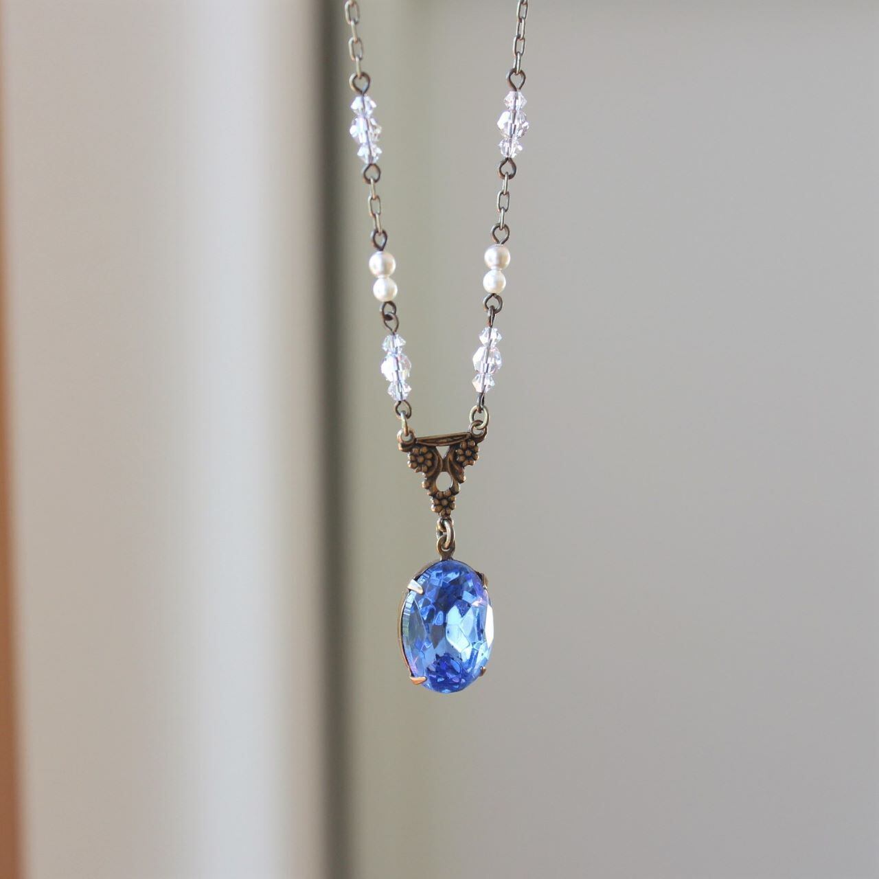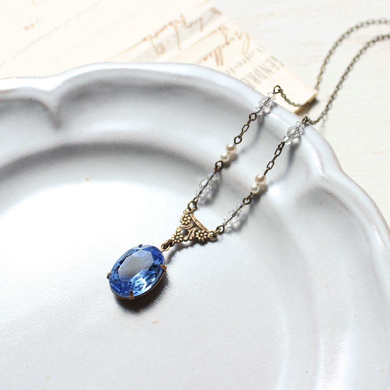 アールデコの貴婦人のように。チェコヴィンテージ・ガラス アンティークジュエリーの薫り ペンダント・ネックレス