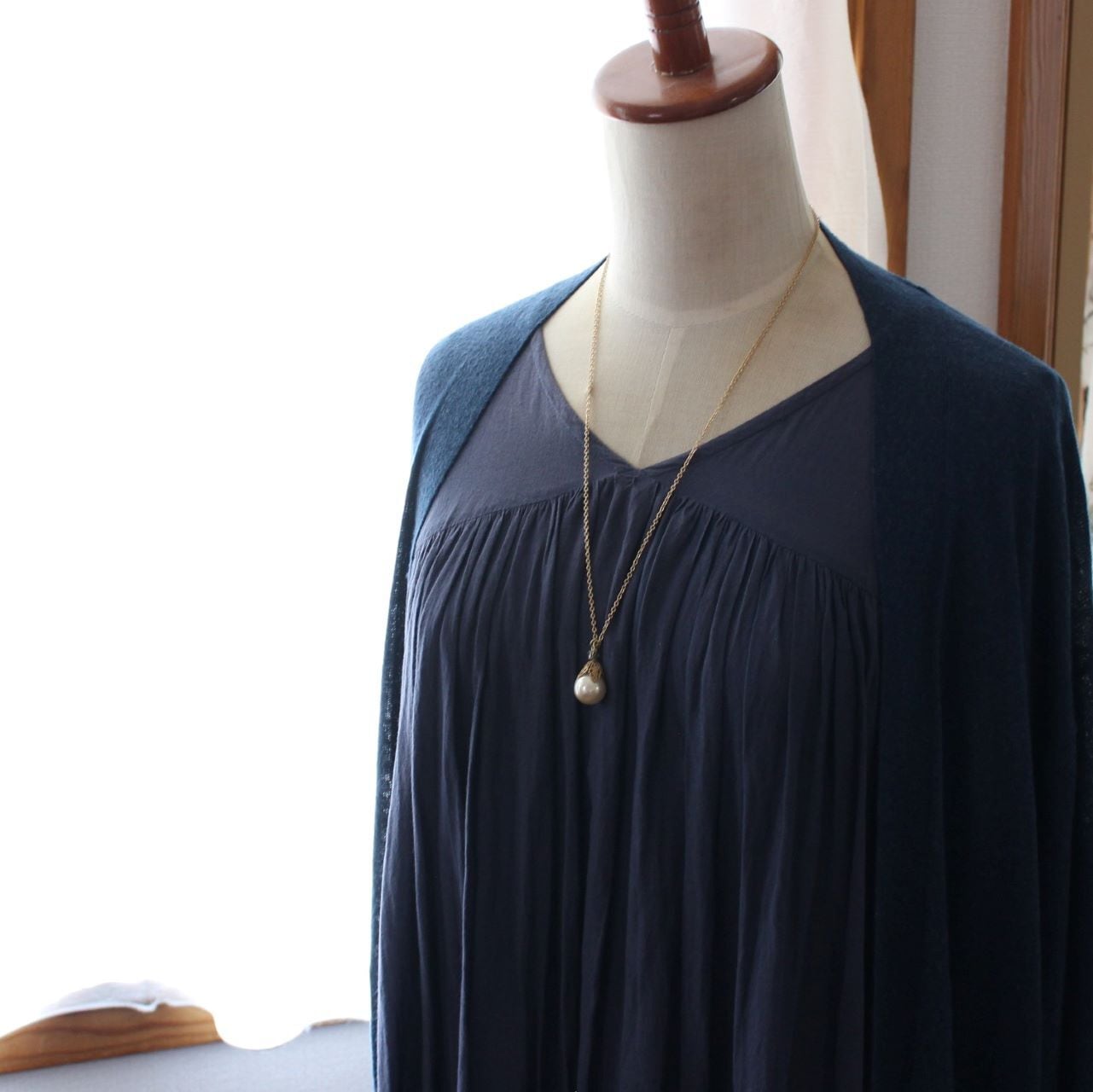 こちらは、留め具あたりに真鍮リングをあしらったデザインで、お首に負担がかからないようになっています。