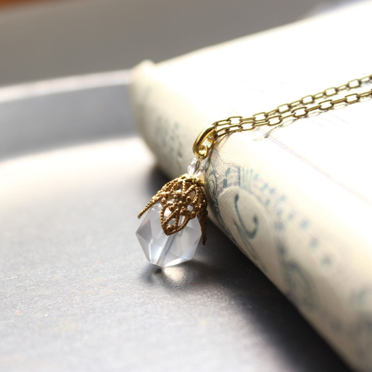 優しい乳白色に癒されて ミリアムハスケル・ヴィンテージ ビーズキャップと水晶のペンダント・ネックレス