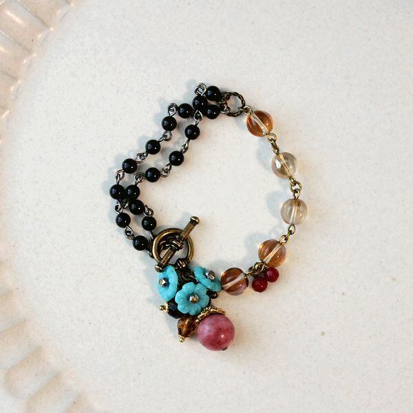 青い花と実のブレスレット ヴィンテージ・天然石で大人の為のキュート!