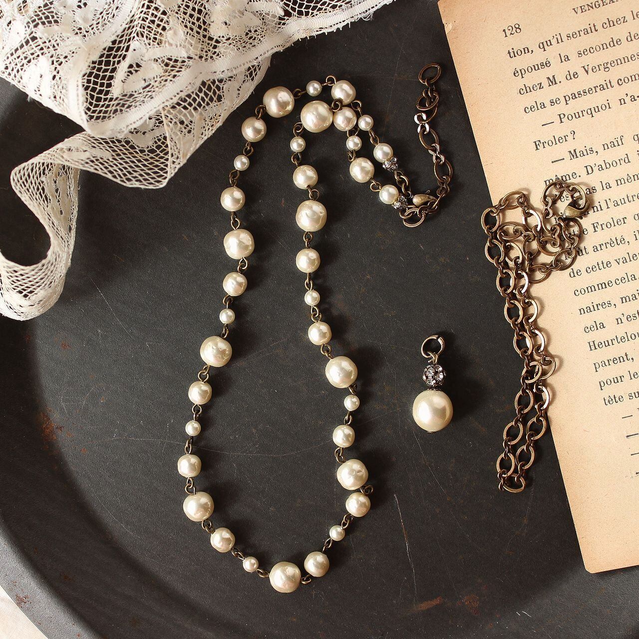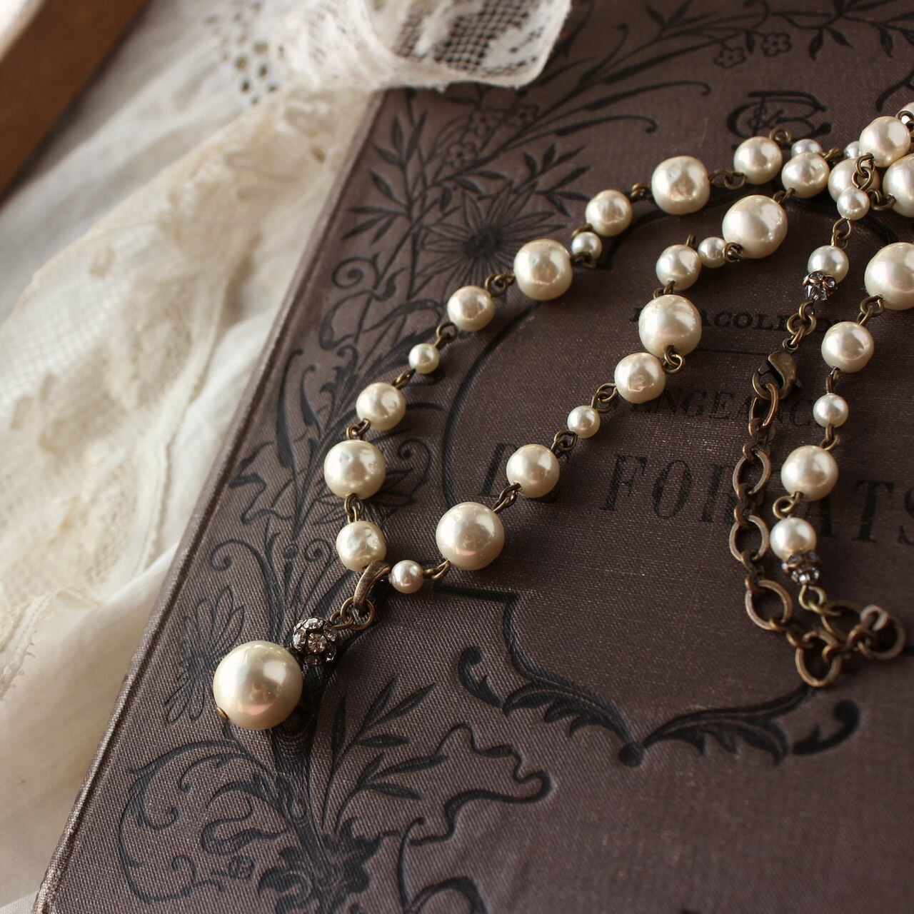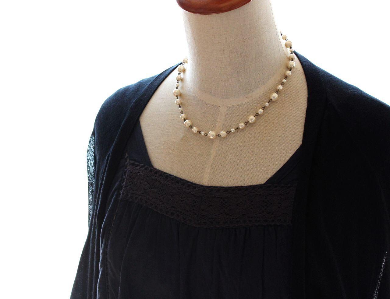 ショートもロングもOK!重ね着けにも。上質ガラスパール・クラシック・スタンダードネックレス チェーン付き3点セット ヴィンテージstyle