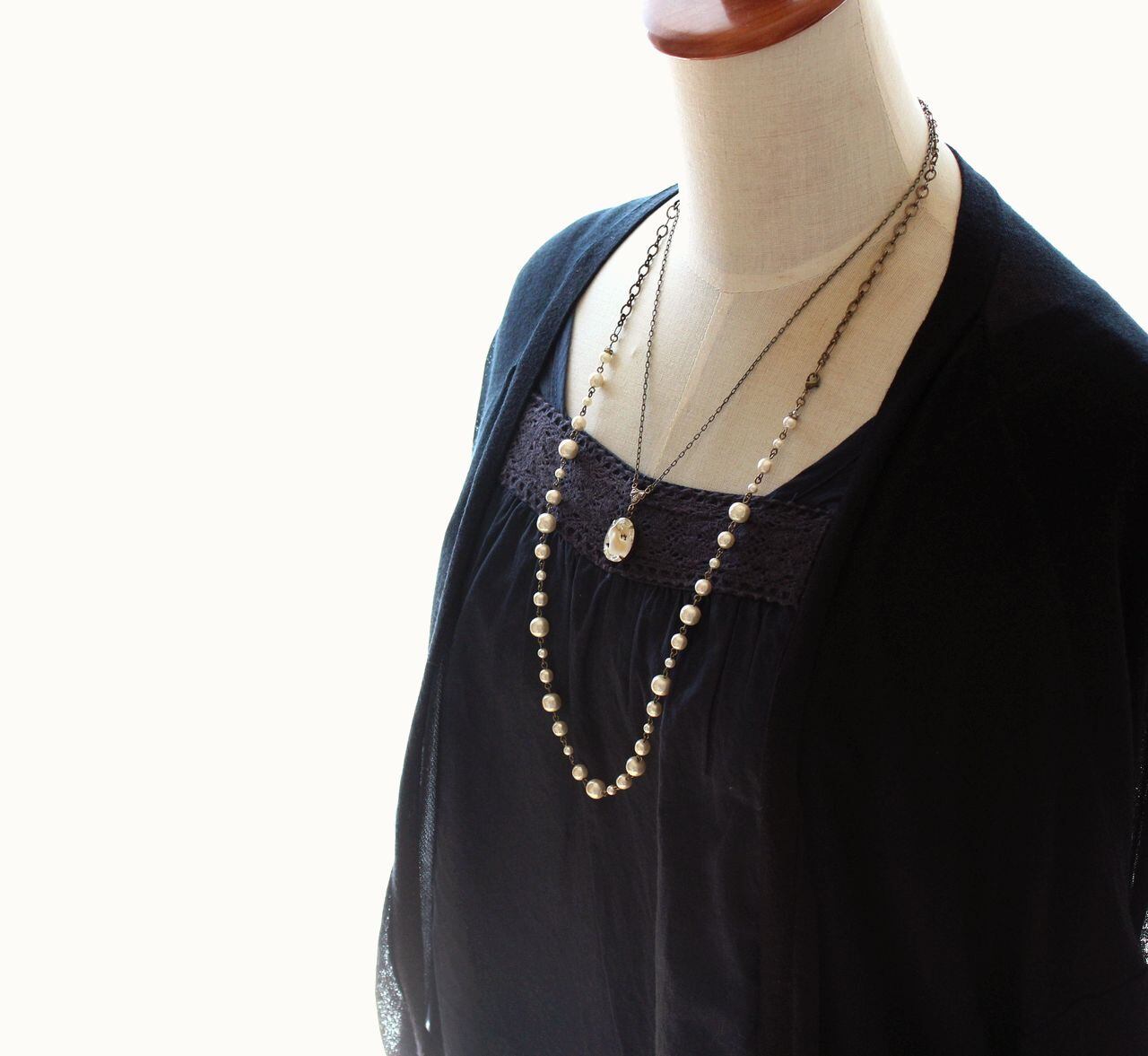 ★ ロングネックレスにヘッドを付けていただいた場合、パールの位置は、少しアシンメトリーになりますが、それもまた素敵だと思います。